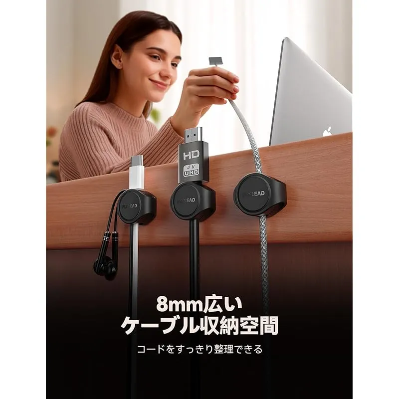 【8個セット マグネット式】ケーブルホルダー。強力なマグネット機能と高品質な粘着シートを搭載し、机や壁、ナイトテーブルなど、あらゆるシーンで確実にケーブルを固定します。USBケーブル、Type-C、マウス、キーボード、ヘッドフォン、電源コード、オーディオラインなど、多様な配線に対応し、使いやすさと洗練されたデザインを両立。乱雑になりがちなケーブルもこのホルダーで美しく整理され、空間が一新します。日常に秩序と快適さをもたらす、待望の新アイテムをぜひお試しください!