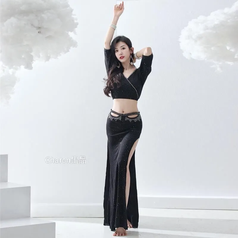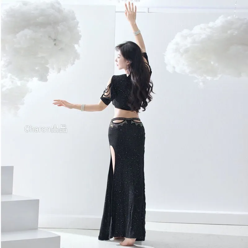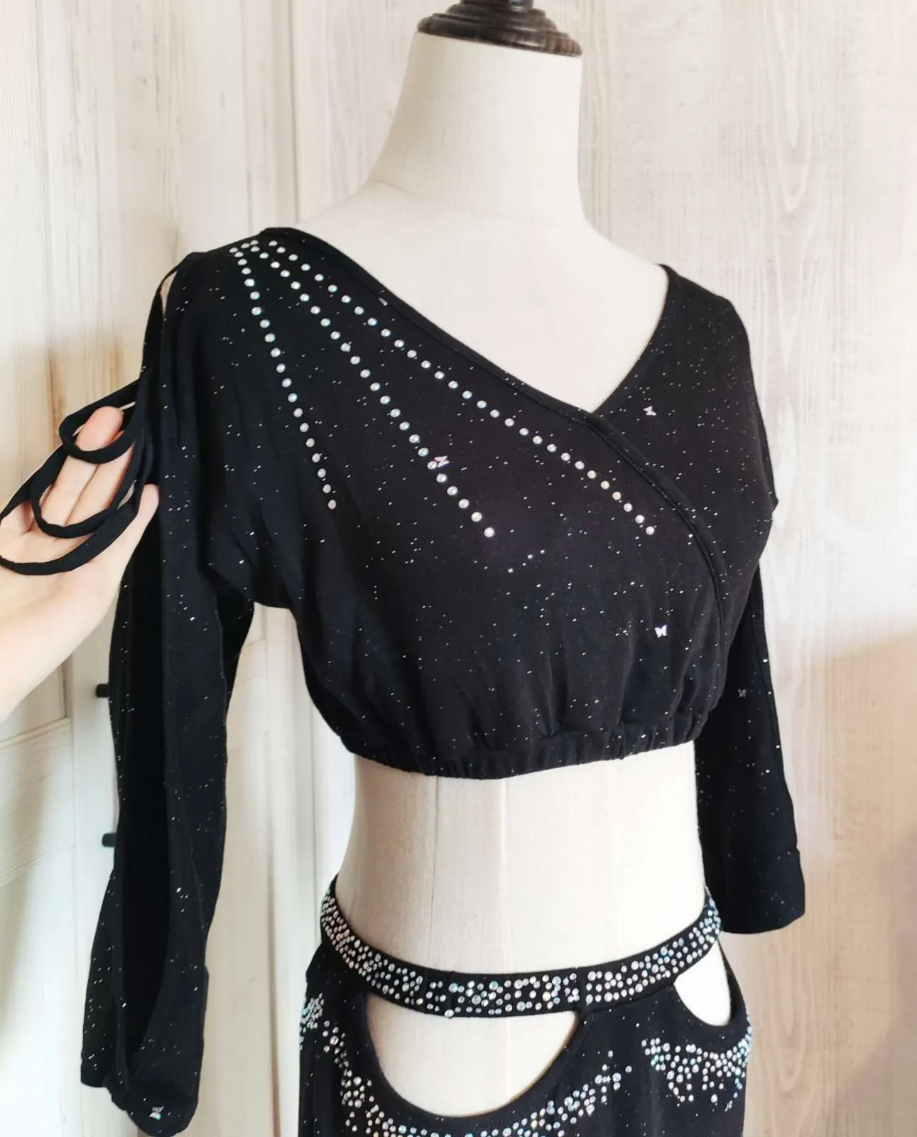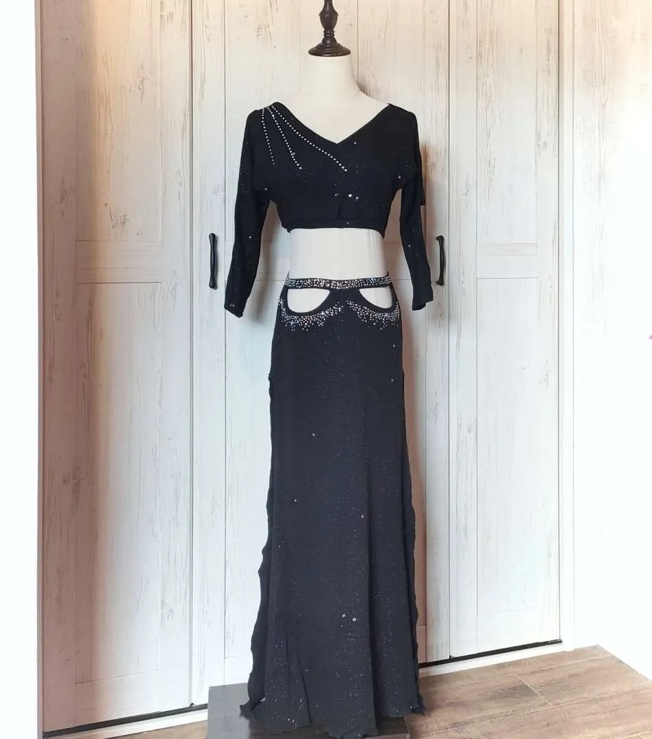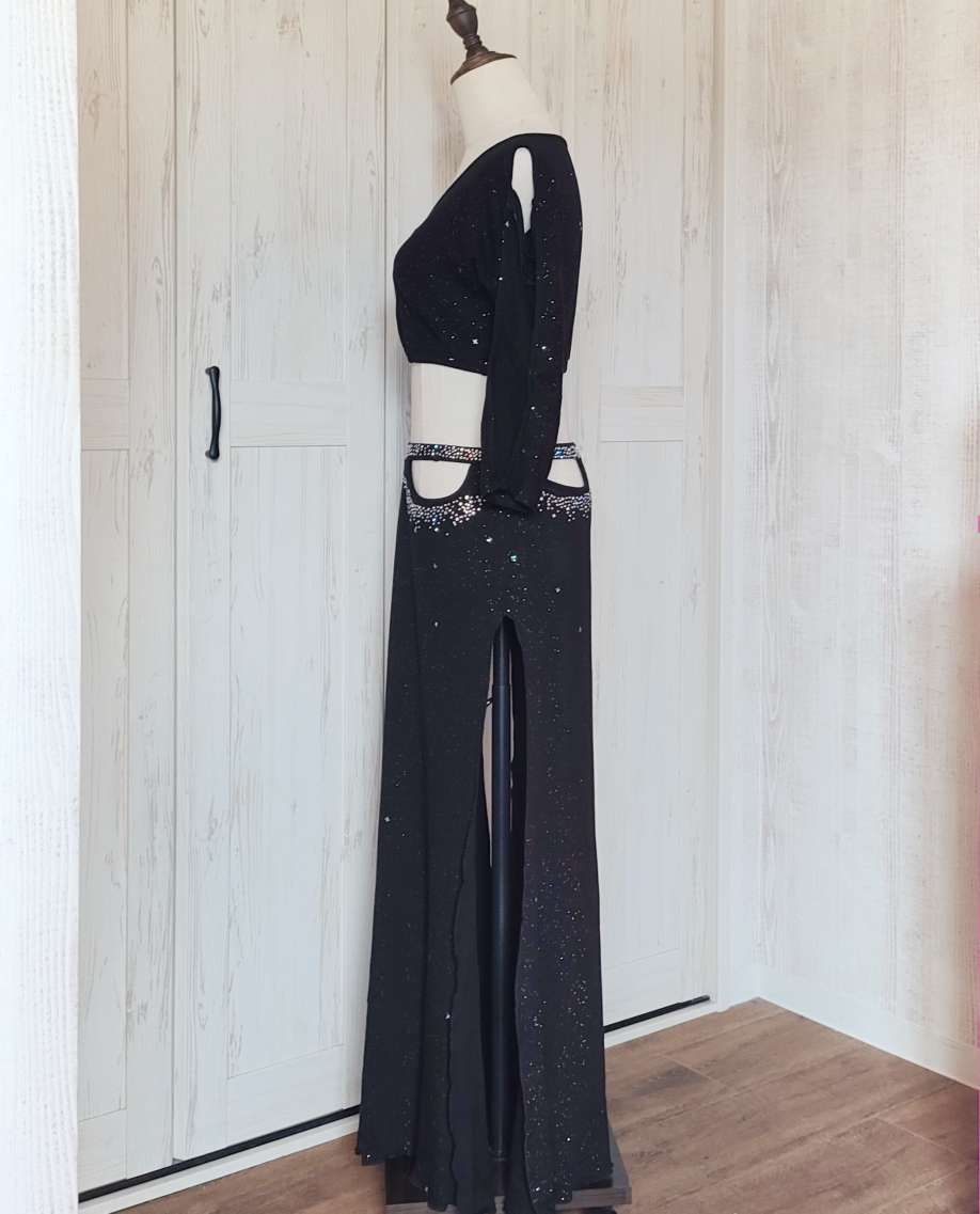 ★新品★ベリーダンス衣装セットアップ レッスン着ウェア練習着 トップス スカート オーロララインストーン