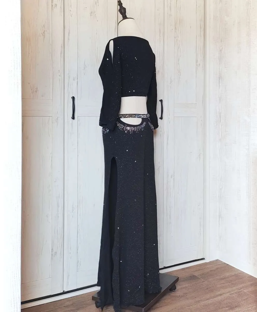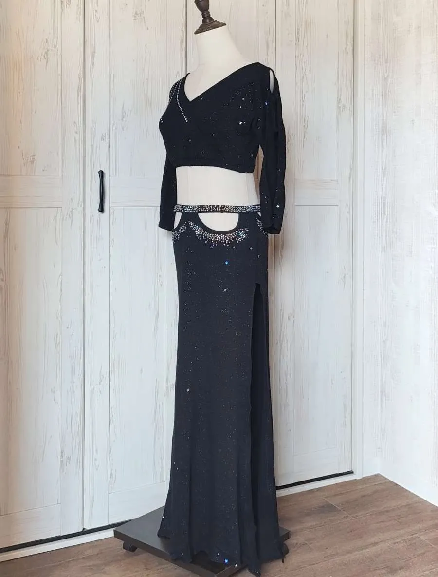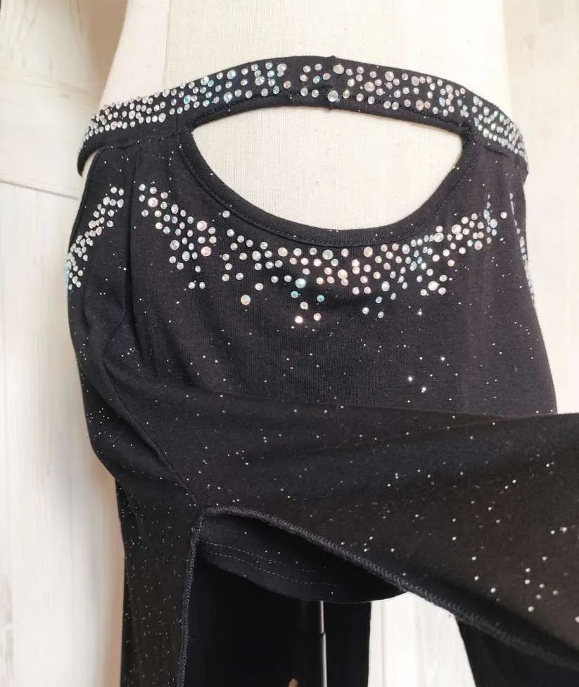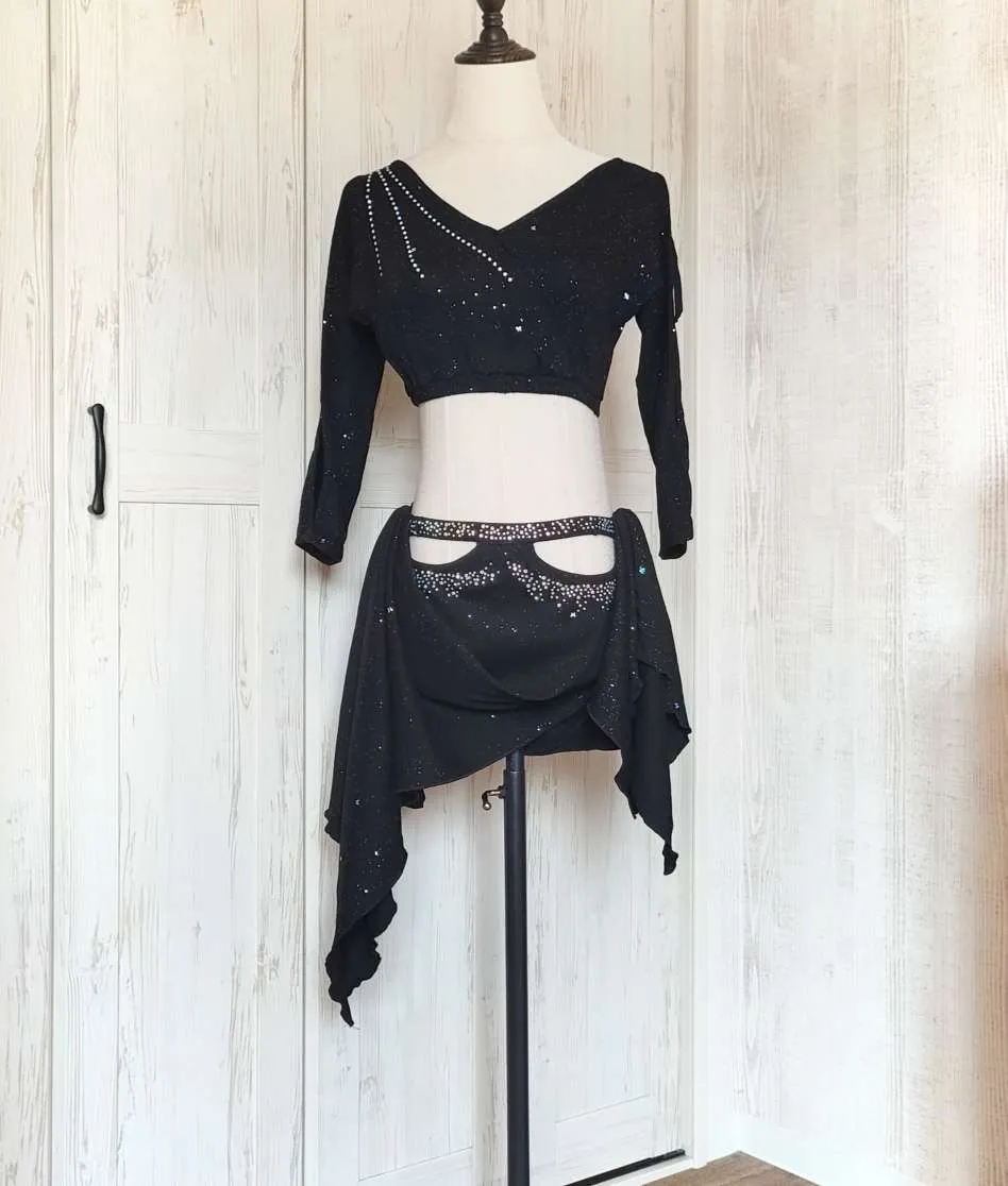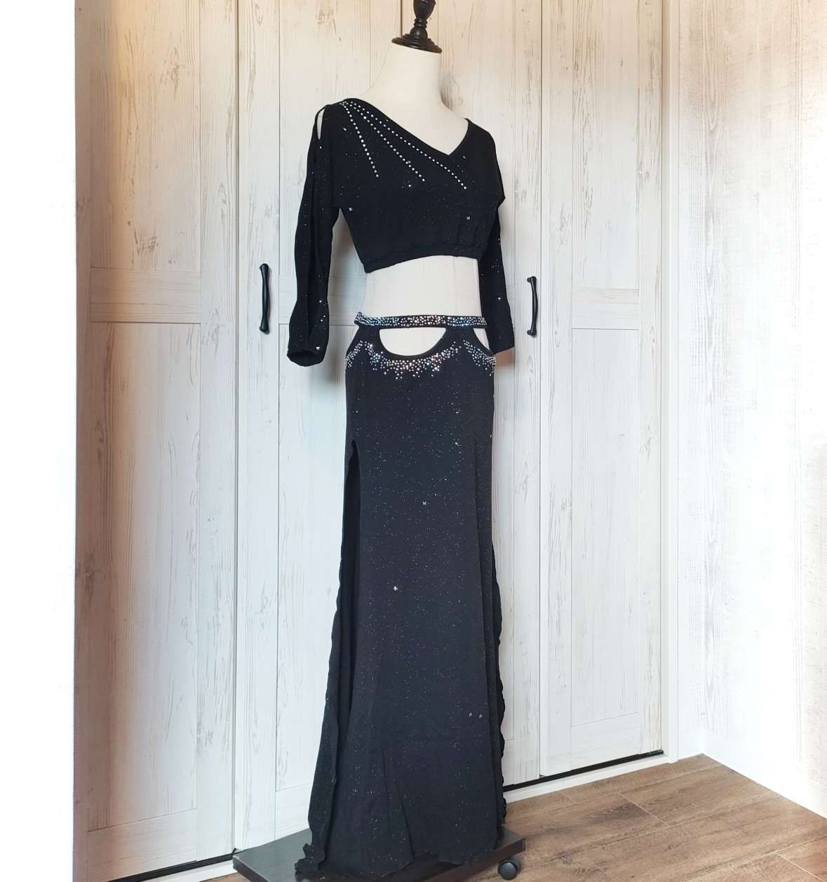 ★新品★ベリーダンス衣装セットアップ レッスン着ウェア練習着 トップス スカート オーロララインストーン