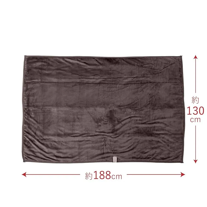 【商品概要】 本体サイズ:タテ188×ヨコ130cm 本体重量:0.76kg 材質:ポリエステル100% 消費電力:75W 消費電力量:弱=約13Wh、適温=約30Wh、強=約57Wh 電気代目安(1時間あたり):弱=約0.4円、適温=約0.8円、強=約1.5円(1kW/h当り27円として計算) 表面温度(目安):弱=約21度、適温=約33度、強=約53度 電源コード長さ:電源側=約1.96m、本体側=約1.7m