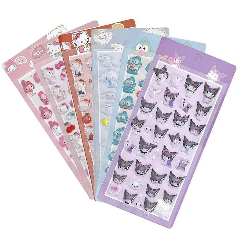 【6枚セット】Mosasa 3dシール 立体シール ぷくぷく ごほうび キラキラ 3D 可愛い 女の子 手芸用品 携帯電話飾り用手帳用 日記帳用 DIY用 貼り付け可能 1