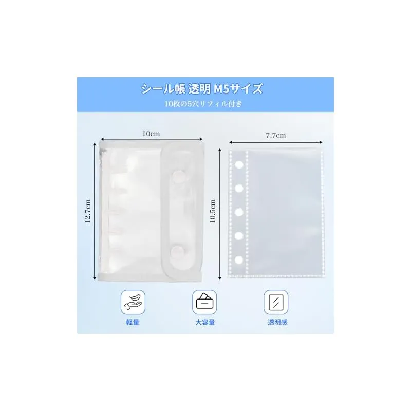 Mosasa シール帳 透明 女の子 はがせる m5 シール バインダー シール手帳 クリアバインダー 5穴 マイクロ5 シール収納 推し活グッズ (ホワイト) 1