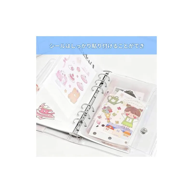 Mosasa シール帳 透明 女の子 はがせる A6 シール バインダー シール手帳 クリアバインダー 6穴 マイクロ6 シール収納 推し活グッズ (透明) 1