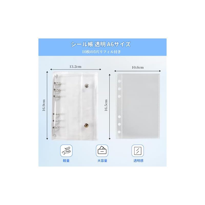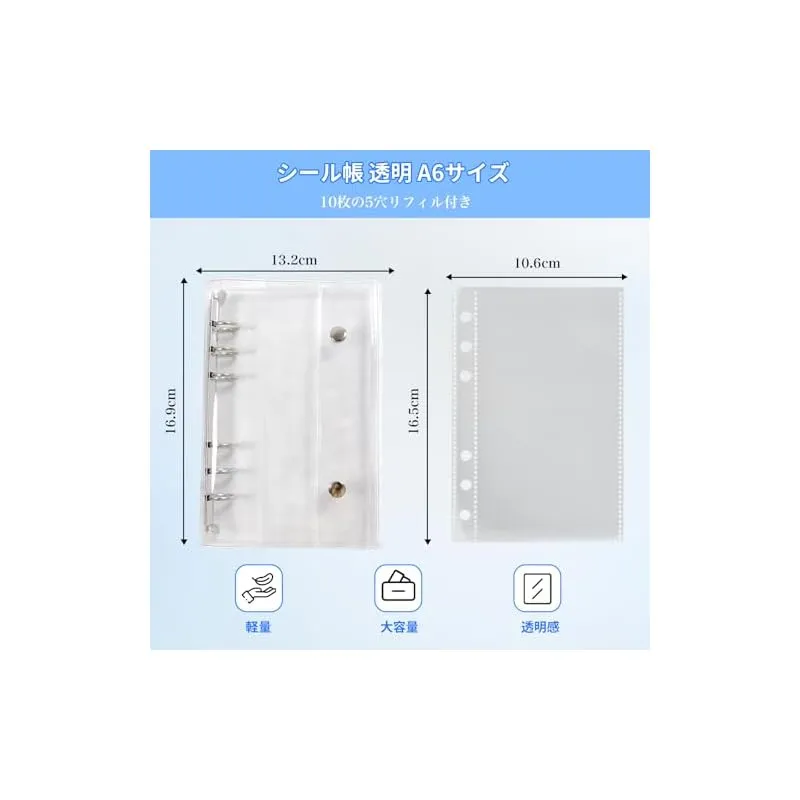 【商品詳細】 ブランド:Mosasa 商品種別:文房具・オフィス用品 商品名:Mosasa シール帳 透明 女の子 はがせる A6 シール バインダー シール手帳 クリアバインダー 6穴 マイクロ6 シール収納 推し活グッズ (透明) 製造元:Mosasa 商品番号:HYB-TM-A6 商品内容:A6シール帳 透明 色:クリア