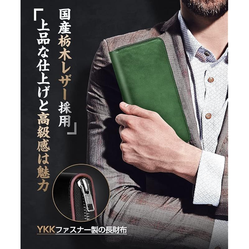 財布 メンズ 栃木レザー 長財布 本革 大容量 YKKファスナー 一流の財布職人が作る レディース財布 ウォレット 牛革 小銭入れ サイフ コンパクト シンプル 無地 男性 紳士用 おしゃれ 男女兼用 父の日 母の日 人気ブランド プレゼント (グリーン)