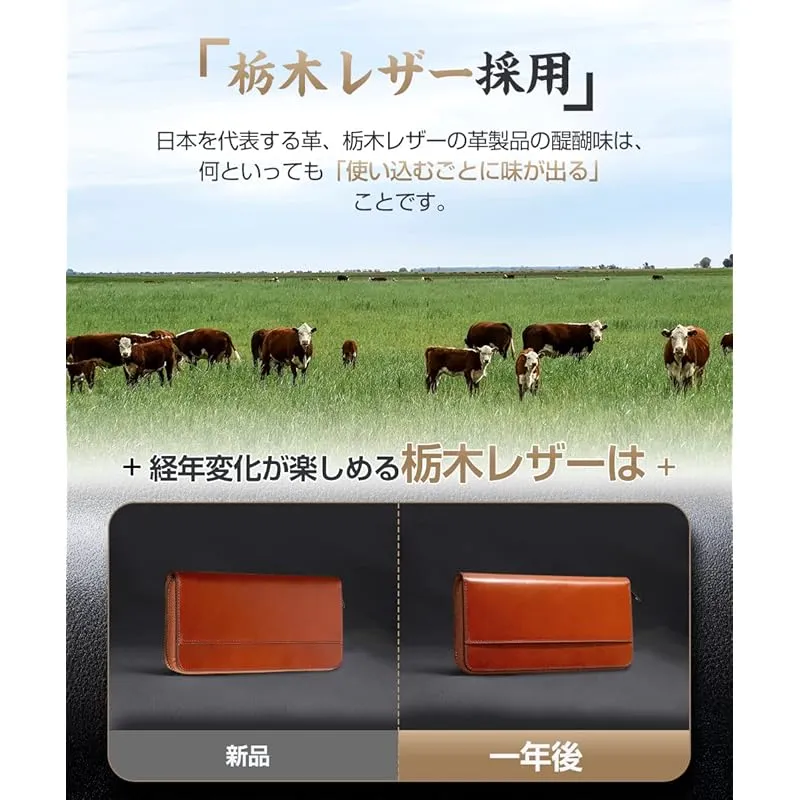 【大容量&YKKファスナー付き】 男女に問わず、大人が選ぶ栃木レザー財布です。財布は表地と内地は牛革を採用して、裏地にはナイロン素材となります。YKKファフナーとこだわりの縫製も欠かせないです。時間に経つと、表面に光沢感が溢れていきます。また、大容量の財布で、小銭入れやカードいれのスペースもたくさんつきます。
