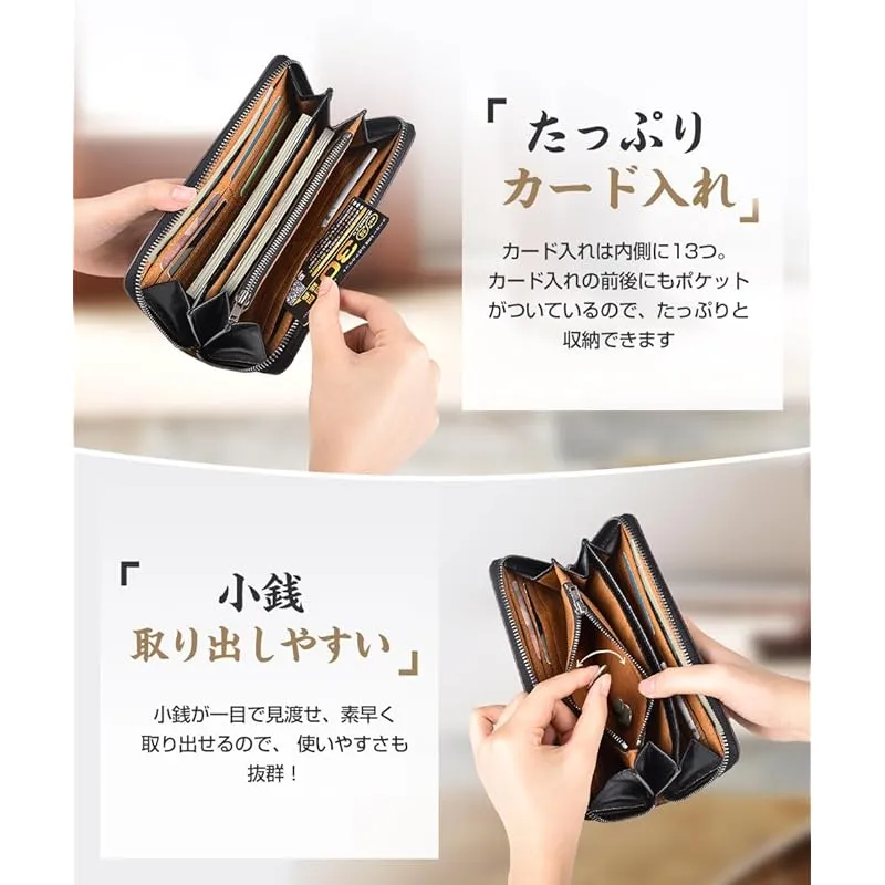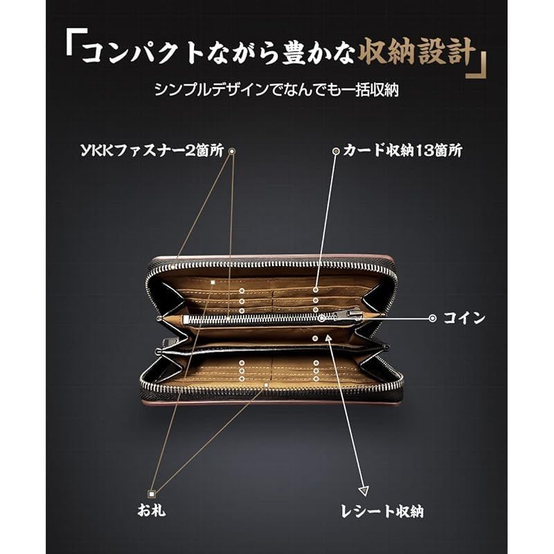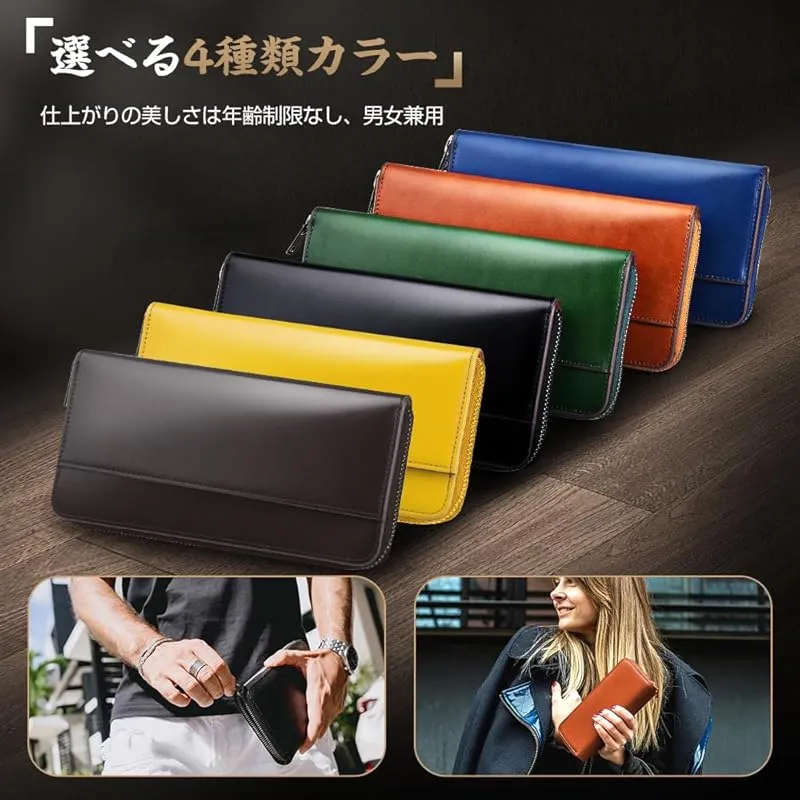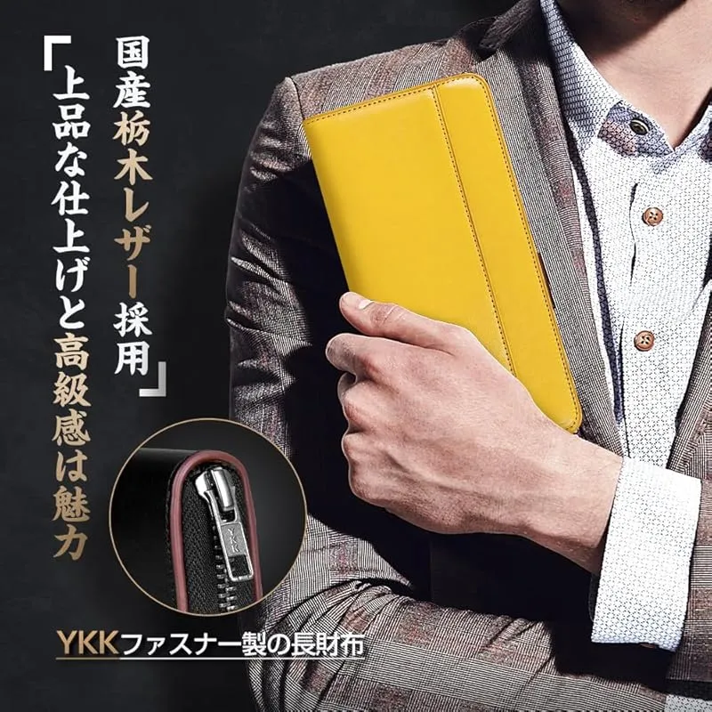 【大容量&YKKファスナー付き】 男女に問わず、大人が選ぶ栃木レザー財布です。財布は表地と内地は牛革を採用して、裏地にはナイロン素材となります。YKKファフナーとこだわりの縫製も欠かせないです。時間に経つと、表面に光沢感が溢れていきます。また、大容量の財布で、小銭入れやカードいれのスペースもたくさんつきます。