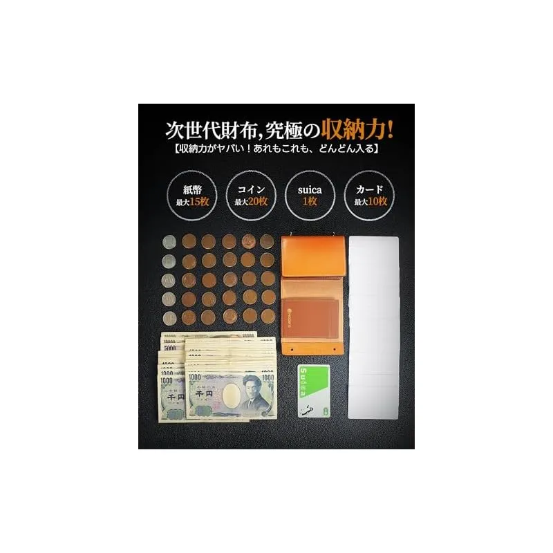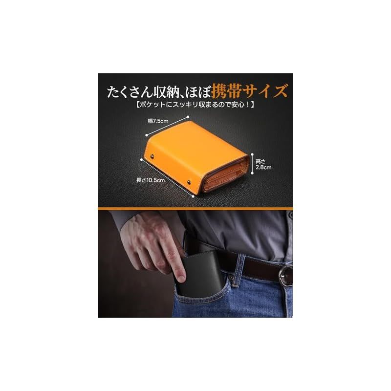【商品概要】 『匠の技が光るメンズ財布』伝統の日本製栃木レザーを贅沢に採用した、耐久性と品格の融合。一つ一つの製品は、職人の手によって丹念に仕上げられ、日本の伝統工芸の精神が息づいています。この栃木レザーの質感は、高級感を漂わせ、使用するたびに日本の匠の技が感じられる逸品です。 『驚きの収納力』財布 メンズ 2つ折り カードたくさん小さい財布は最大硬貨20枚、紙幣15枚、カード10枚、Suica1枚を一度に収納可能と 長財布 並みの 大容量 。そのコンパクトなサイズにもかかわらず、驚くほどの収納力を誇ります。日常生活で必要なさまざまな財布アイテムを、快適に収納できるため、貴重な持ち物を整理し、身軽にお出かけすることができます。 『小さなミラクル』10.5x9.5x3cmのコンパクトなデザインは、驚くほどの収納力を持ちながらも、身につける際の負担を軽減します。手に心地よくフィットし、持ち歩きやすいサイズ感は、忙しい現代人のライフスタイルにぴったり合います。コンパクトなサイズながら機能性と快適性を追求。 『革新的なデザイン』使いやすさと洗練されたデザインの融合二つ折り財布。独自の「じゃばら式」カード収納システムは、カードの取り出しをスムーズします。また、特別な設計により、紙幣を折り畳まず、角を折らない。さらに、箱型の小銭入れ の設計は、大容量でありながら、硬貨が落ちることなく、取り出しも簡単です。日常の使い勝手を考え抜いたデザインは、快適で便利な生活をサポートします。 『一目惚れの外観』高級感溢れるデザインと充実のアフターサービス折り畳み財布。洗練された外観は、どんなシーンでも注目を集めること間違いなしです。また、高級感あふれるギフトボックスに包装され、贈り物としても最適です。さらに、180日間のアフターサービスが付いており、安心してお買い求めいただけます。