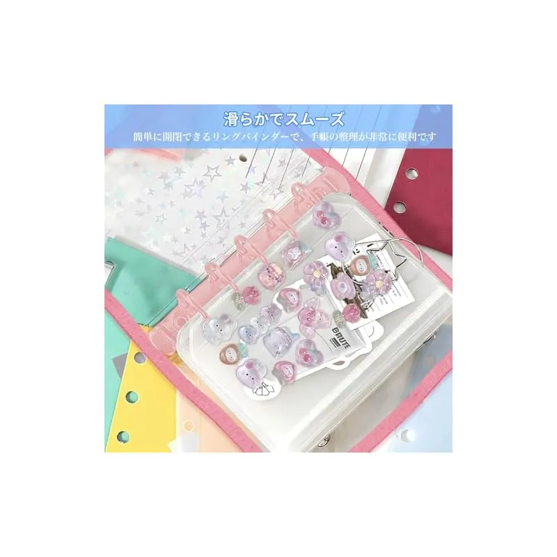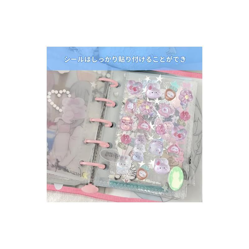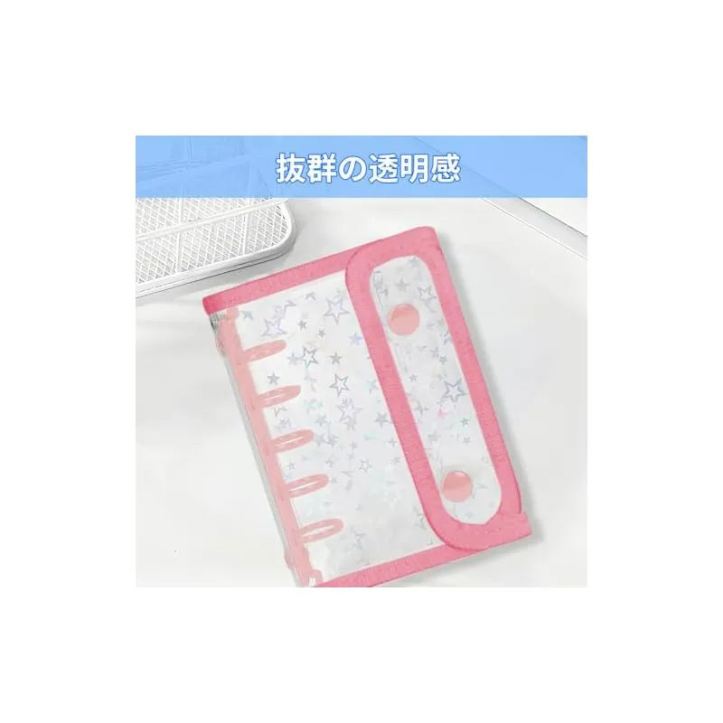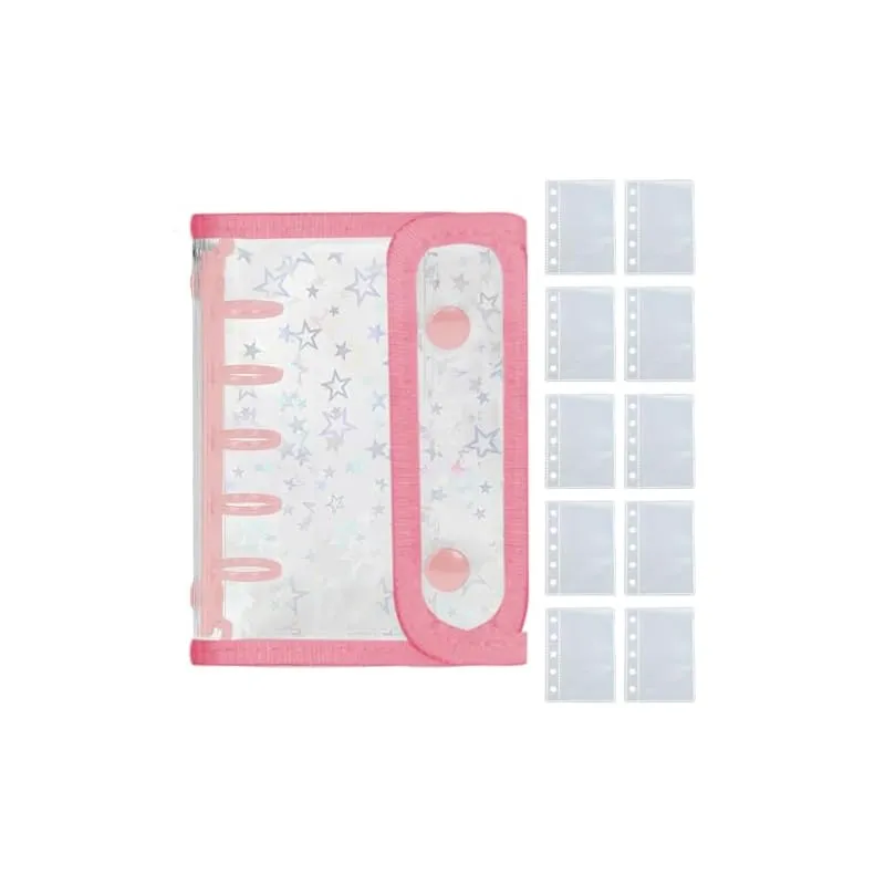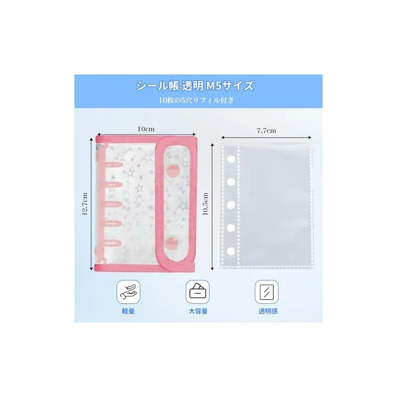 Mosasa シール帳 透明 女の子 はがせる m5 シール バインダー シール手帳 クリアバインダー 5穴 マイクロ5 シール収納 推し活グッズ (星柄+ピンク) 1
