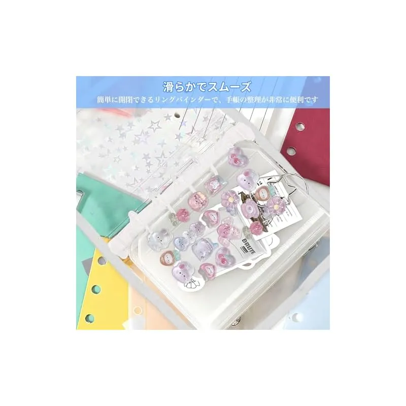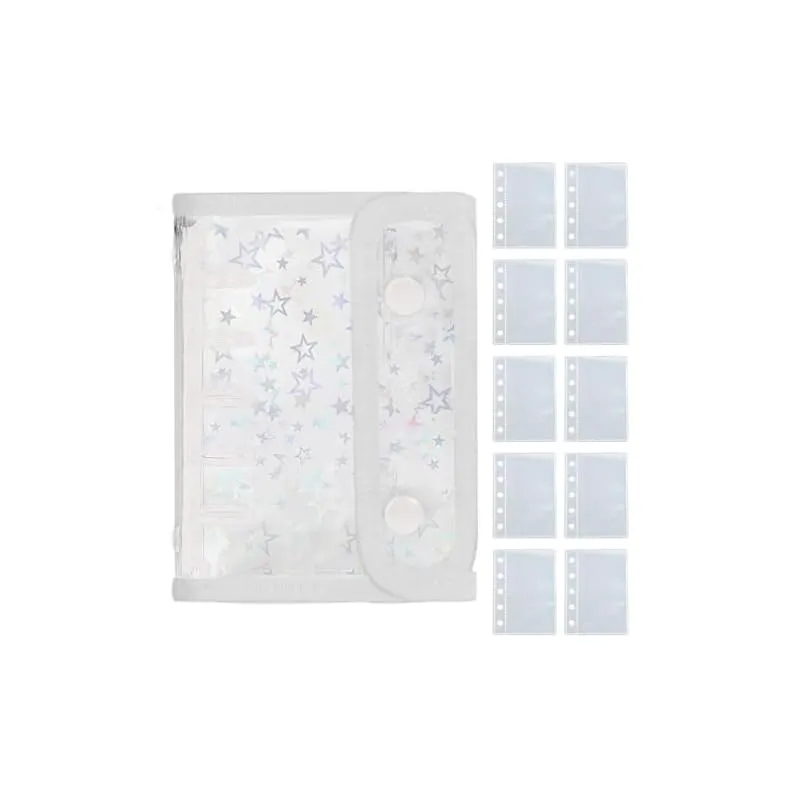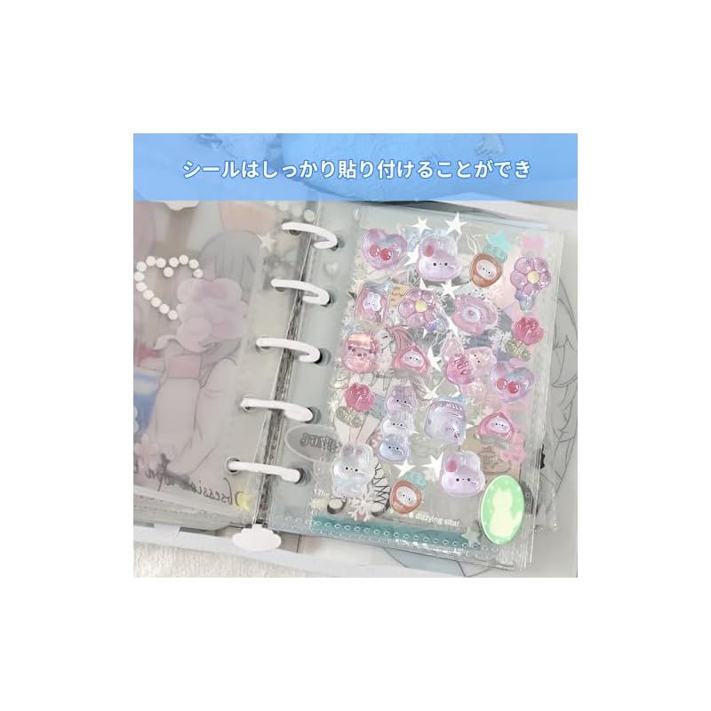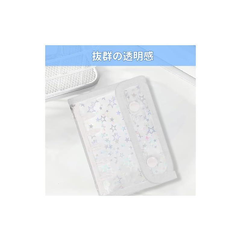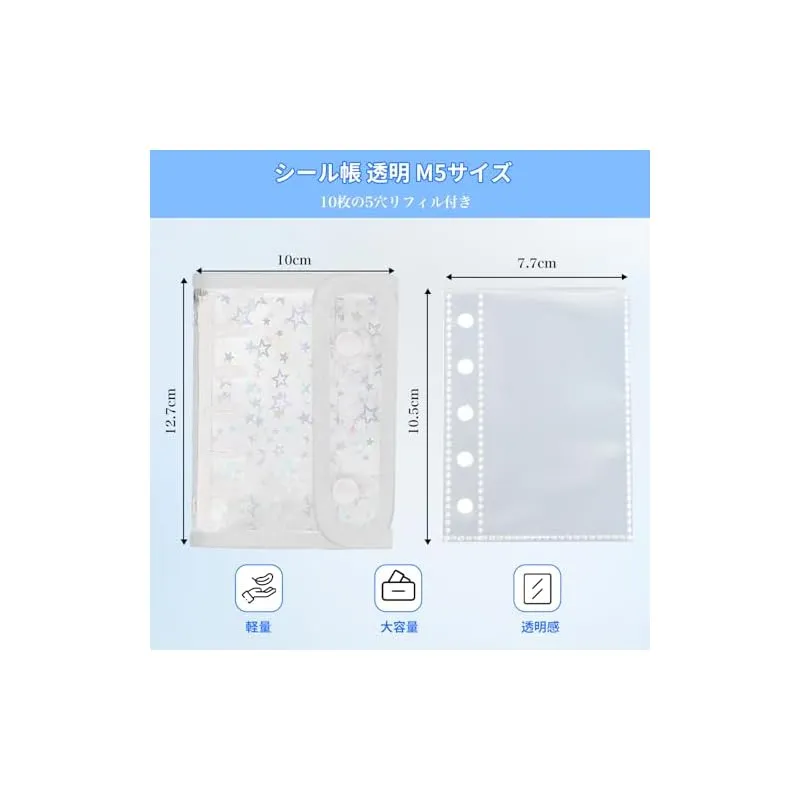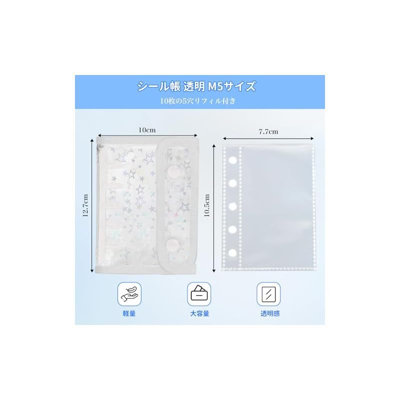 Mosasa シール帳 透明 女の子 はがせる m5 シール バインダー シール手帳 クリアバインダー 5穴 マイクロ5 シール収納 推し活グッズ (星柄+ホワイト) 1