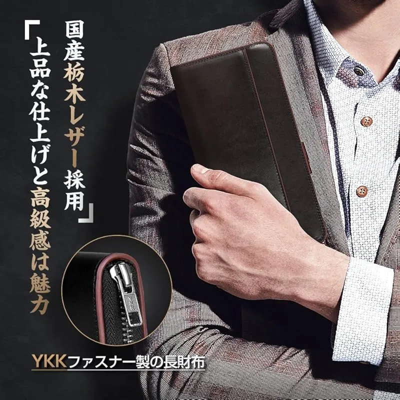 【大容量&YKKファスナー付き】 男女に問わず、大人が選ぶ栃木レザー財布です。財布は表地と内地は牛革を採用して、裏地にはナイロン素材となります。YKKファフナーとこだわりの縫製も欠かせないです。時間に経つと、表面に光沢感が溢れていきます。また、大容量の財布で、小銭入れやカードいれのスペースもたくさんつきます。