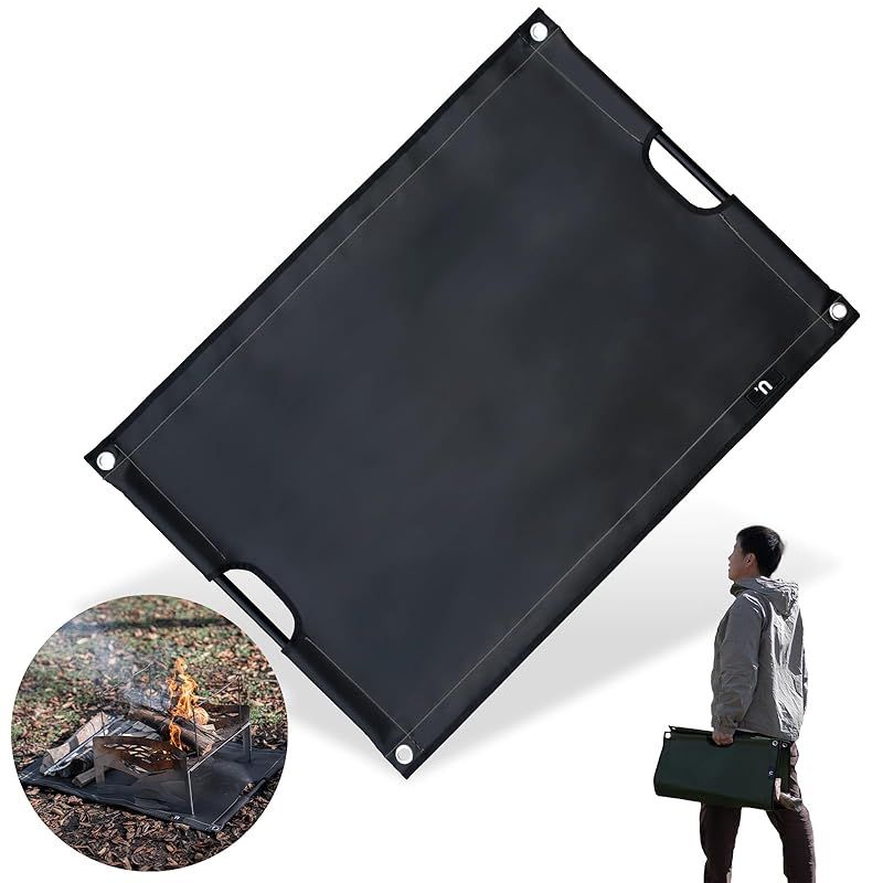 焚き火シート スパッタ 焚き火台 チクチクしない 両面 シリコン ブラック カーキ 薪バッグ 耐火 難燃 耐熱 洗える キャンプ日本 FSN (ブラック)
