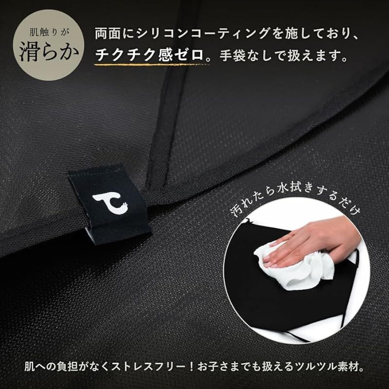 【滑らかな手触りで手袋不要】 両面シリコンコーティングにより肌への刺激(チクチク感)を軽減。両面ツルツルの滑らかな手触りなので手袋を使用しなくて扱え、設置やお手入れがしやすくなっています。