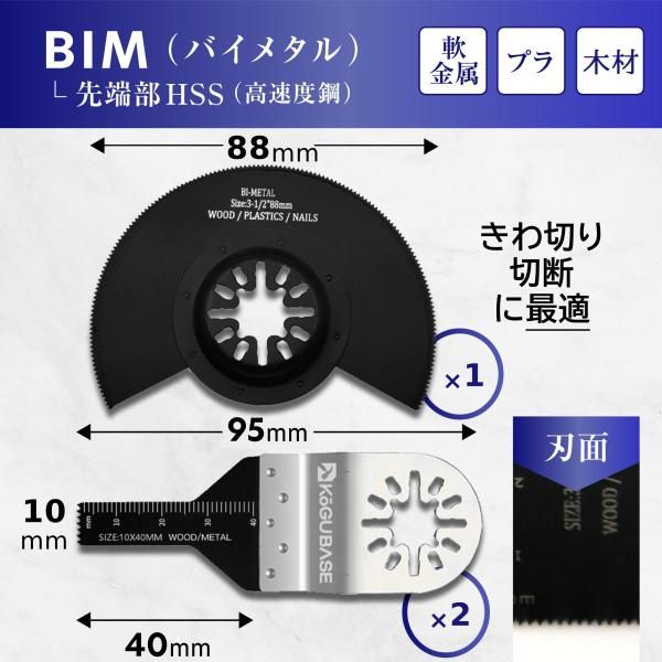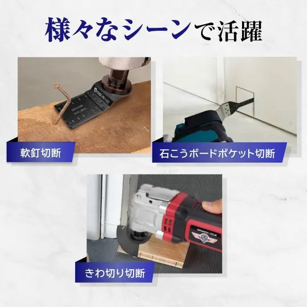 【内容】 ・バイメタル( BIM;高速度鋼(HSS)刃 ) 刃幅 × 枚数 10mm × 2枚 34mm × 2枚 44mm × 2枚 28mmロングタイプ×2枚 64mmロングタイプ × 2枚 88mmラウンドソー×1枚 用途:軟金属・細釘・アルミ材・木材・プラスチック等 ・OIS規格専用(スターロックではご使用できません)