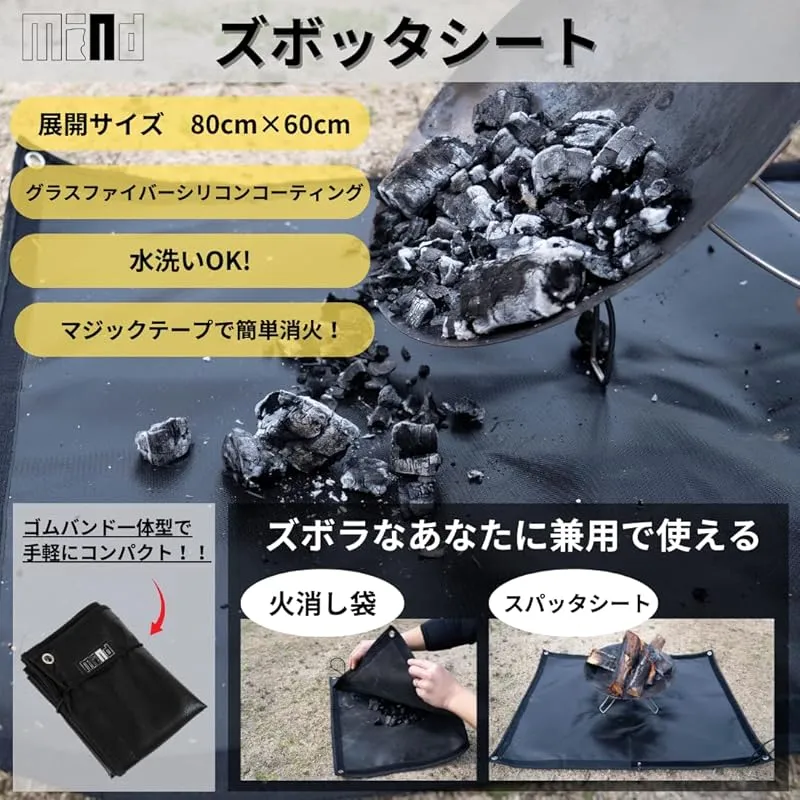 mind ズボッタシート 焚き火シート BBQシート 火消し袋 炭処理袋 スパッタシート アッシュバッグ 不燃 防炎 耐熱 1