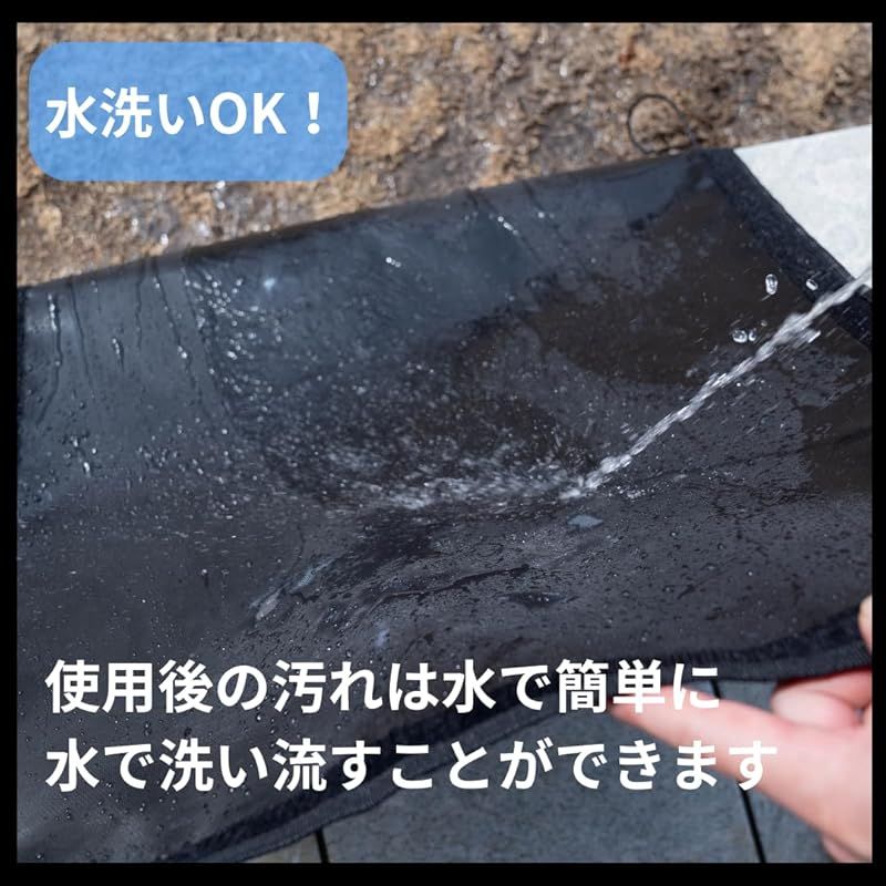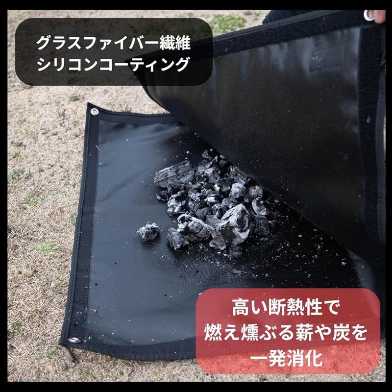 【高耐熱素材、防水性、お手入れ】 材質はグラスファイバー繊維シリコンコーティングを施してあります。高い断熱性を発揮し、熱い燃え燻ぶる薪や炭を入れることができます。また防水性があるため、使用後は水洗いで簡単お手入れできます。
