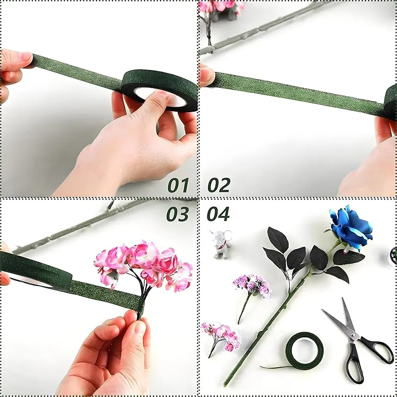 【高品質素材】フラワーポールはプラスチックとワイヤーでできており、丈夫で耐久性があり、折りたたみ可能です。ラップがリアルさを引き立てる。 フローラルテープは伸縮性と粘着性に優れています。 3.