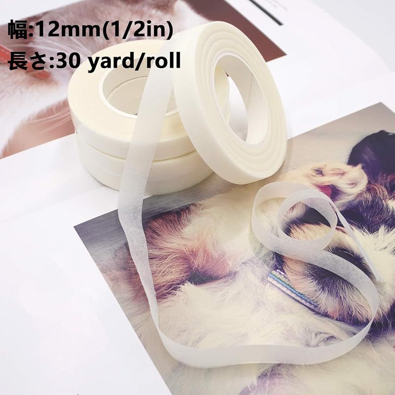 【商品説明】 (4巻)白 単巻1.2 cm幅27 m長 花用テープ 花束やコサージュの茎巻き・アレンジメントに最適