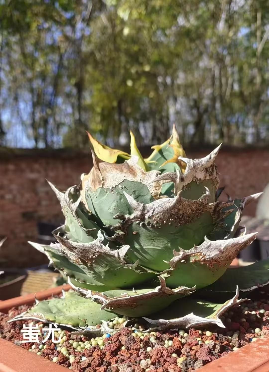 【蚩尤 TC】アガベ チタノタ 子株 亀甲積み鉢120 鉢付きセット ちゆう しゆう Chiyou