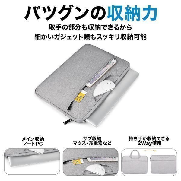 ●チェリーピンク ・サイズ 13.3インチ 36×27×3cm 34.5×24.5×2cm← チェリーピンク・ピンクは終了 14.1インチ 39×28×3cm 36.5×26.5×2cm ブラック・チェリーピンク・ダークグレー終了 15.6インチ 43×32×3cm 40.5×29.5×2cm ブラック・グレー終了 商品名:パソコンケース 15.6 14 13 インチ おしゃれ PCケース ノートパソコンケース PCバッグ 防水 軽い 衝撃吸収 パソコンケース 強力防水で守り抜く! ・衝撃吸収素材採用 内部全面にふわふわの起毛素材を採用 クッション性抜群で衝撃から守り抜きます! ・3層構造 裏起毛生地 衝撃吸収クッション 高撥水性生地 ・体に優しい超軽量設計 バックinバックで使用してもストレスを感じない超軽量&シンプル設計290g前後の軽さで 毎日の通勤通学でも疲れしらず! ・バツグンの収納力 取手の部分も収納できるから細かいガジェット類もスッキリ収納可能 メイン収納 ノートPC サブ収納 マウス 充電器など ※画像の色はパソコン環境により多少違って見える場合があります
