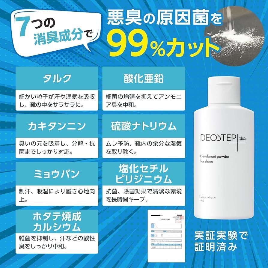 デオステップ+ 靴 消臭 パウダー 60g 足の匂い消し 【悪臭菌を99%除去・日本製・天然由来】 靴の匂い消し