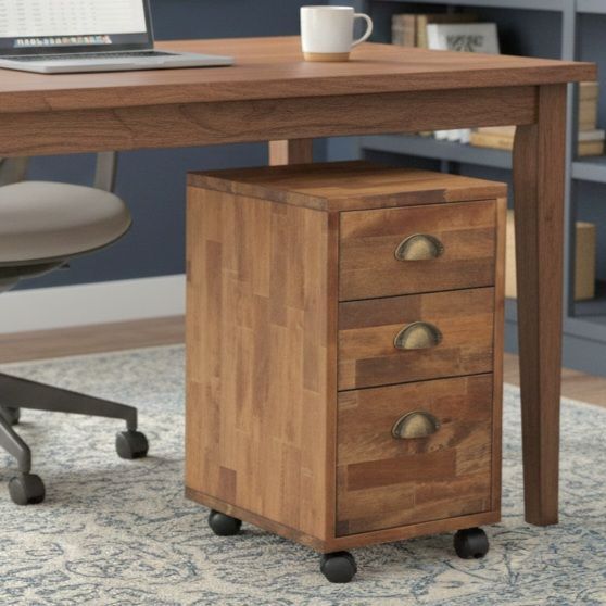 【商品説明】 テレワークにもぴったりの、木製3段キャスター付きチェストです。 重厚感のあるダークウォルナット調の深い色合いと美しい木目が特徴。 引き出しにはB5サイズの書類がたっぷり入り、デスク周りの整理整頓に役立ちます。 引き出しの取っ手は、アンティーク調の金具を使用し、細部にまでこだわりました。 スムーズに移動できるキャスター付きで、お掃除や模様替えも楽々。 どんな場所におすすめ? 書斎やリビング、寝室など、どんなお部屋にも馴染みます。 書斎/ワークスペース: デスク下の書類や文房具を収納し、すっきりとした集中できる空間を作ります。 リビング: 趣味の道具や小物入れとして。 寝室: サイドテーブル代わりにランプや本を置いても素敵です。