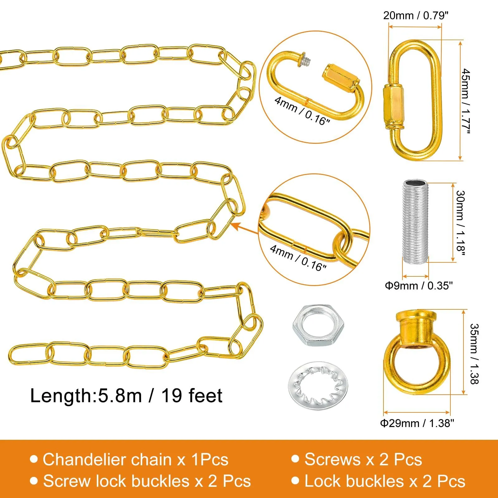 PATIKIL 5.8 M ライティングチェーン 吊り下げランプ シャンデリアチェーン 照明器具用チェーン 耐荷重65lbs ペンダントライト シーリングファン用 金