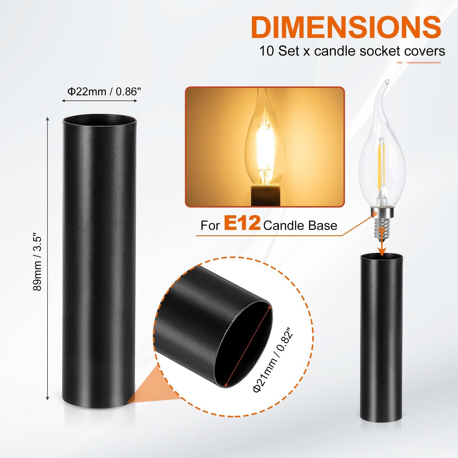 PATIKIL 3.5キャンドルカバースリーブ 10個 金属製 E12 シャンデリア ソケット スリーブ 断熱性 熱収縮性 難燃性チューブ ランプ用電球ライト ベース ホルダー付き 黒