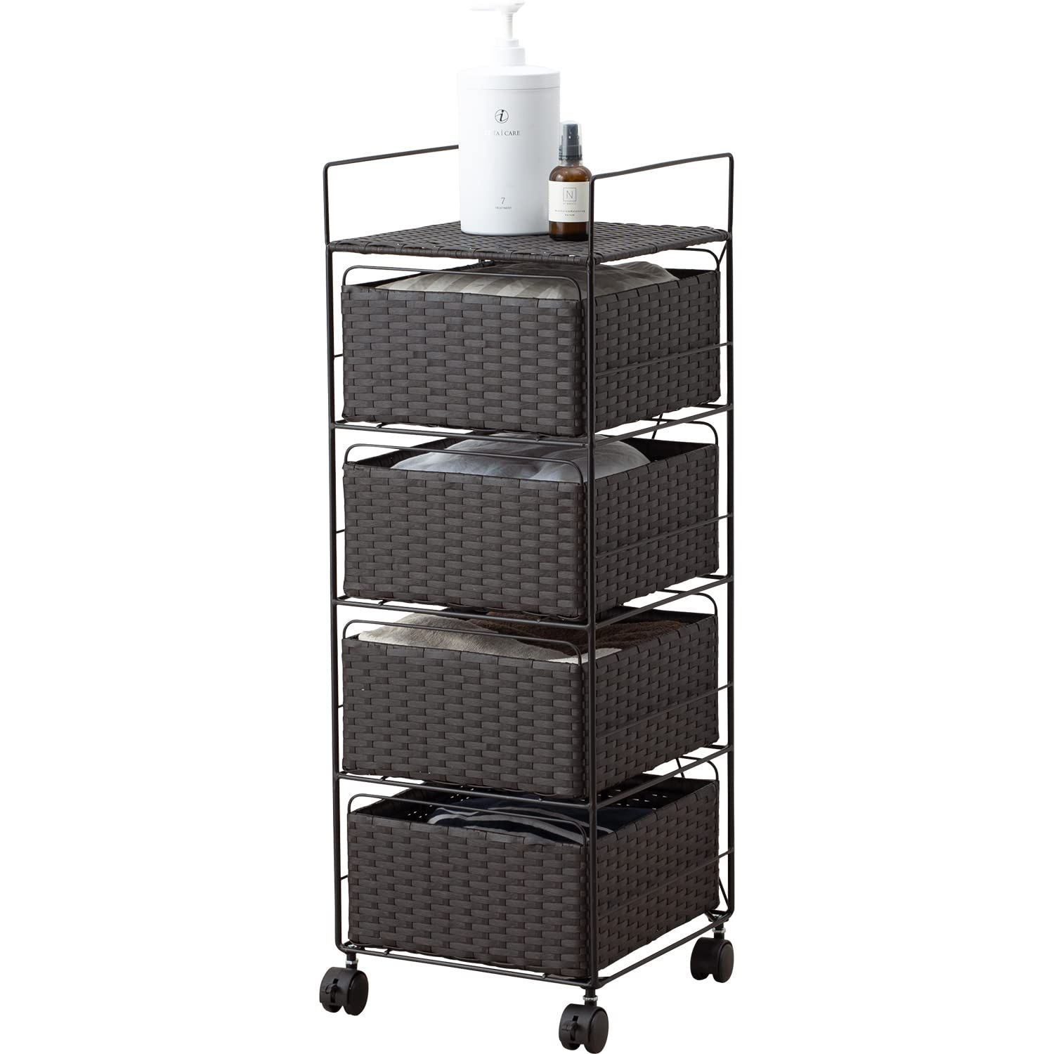 【人気商品】4段 ラック 幅30 ワゴン 棚 ボックスタイプ 通気性 ランドリー 大容量 キャスター付き シンプル コンパクト 奥行30 萩原 高さ85 ダークブラウン 1台 RAN-2434DBR