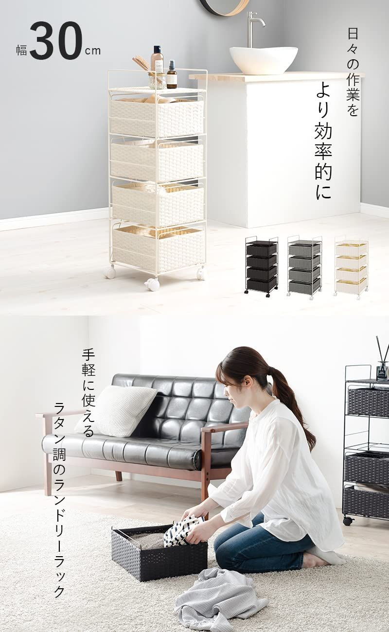 萩原 ランドリー ラック 4段 幅30 ワゴン 棚 ボックスタイプ 通気性 大容量 キャスター付き シンプル コンパクト 奥行30 高さ85 ダークブラウン 1台 RAN-2434DBR