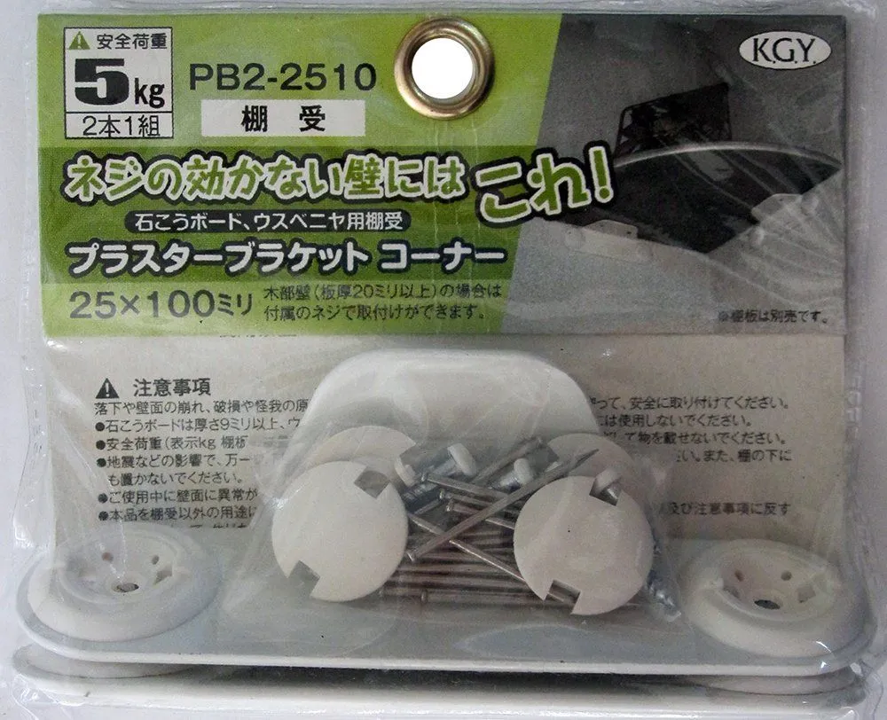 ケイジーワイ工業 KGY 石こうボード ウスベニヤ専用棚受 プラスターブラケットコーナー 2本入り PB2-2510 ホワイト