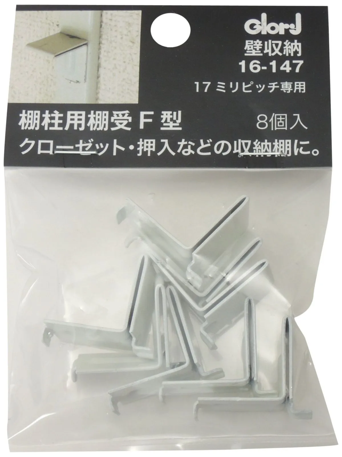 ベスト ステンレス棚柱用パーツ F型棚受 ホワイト 8個入り 17ミリピッチ用 16-147