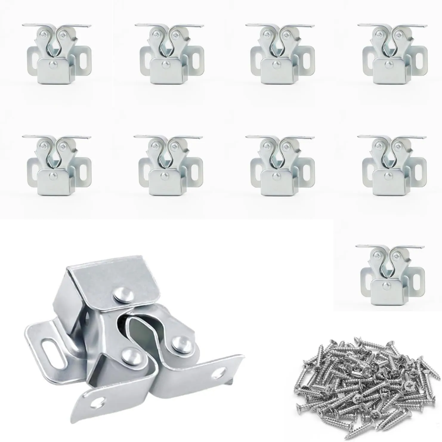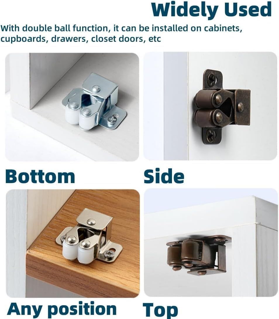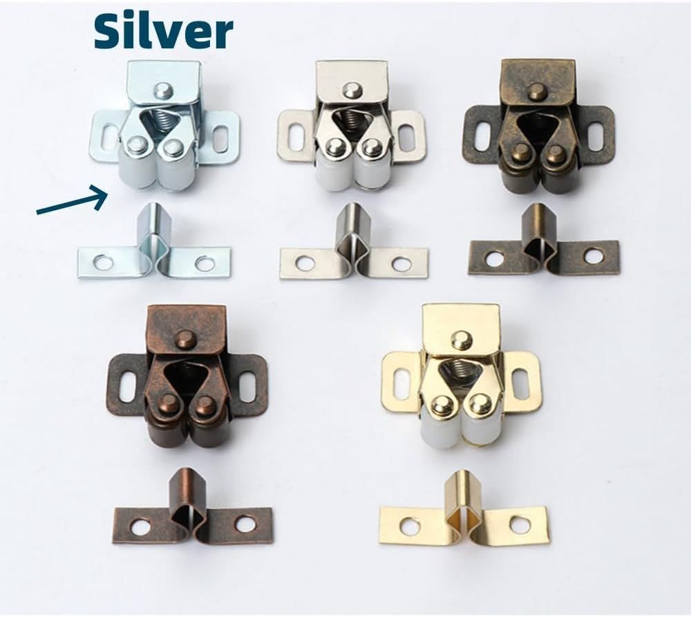 ダブルローラー ホーム キャビネット 10個入 家具 二重ローラー 食器棚 ドア ラッチ ドアキャッチャーネジ付き (シルバー)