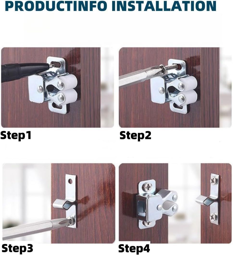 [簡単で柔軟な取り付け]-キャビネットキャッチの取り付けは比較的簡単です。付属のネジをキャビネットや家具の内側に固定するだけで、繰り返しの扉の開閉にも耐えられるしっかりとした固定が可能です