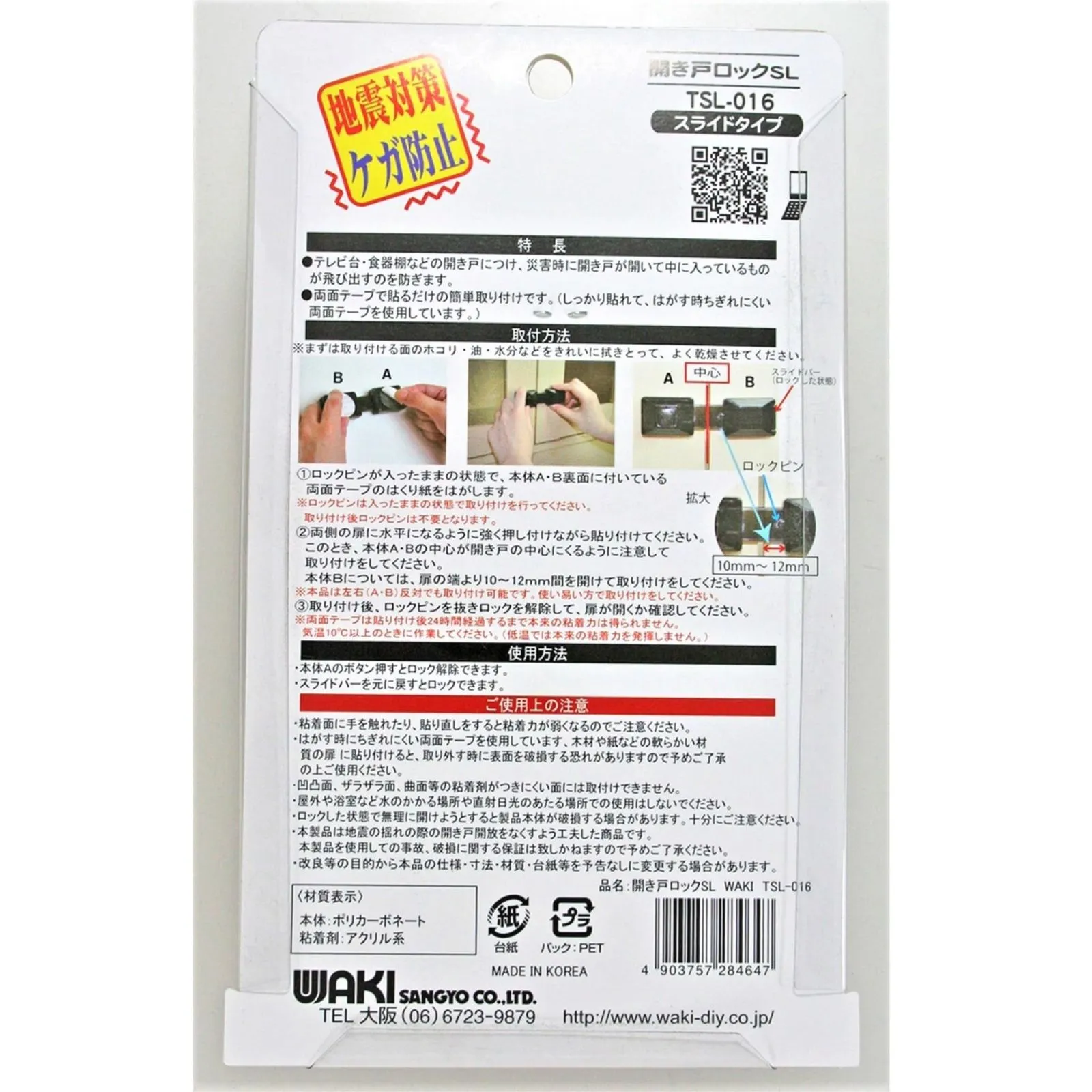【数量限定】20×30×105mm TSL-016 クリアブラック 地震対策 開き戸 食器棚 1個入 スライドタイプ 開き戸ロックSL Sangyo) 和気産業(Waki