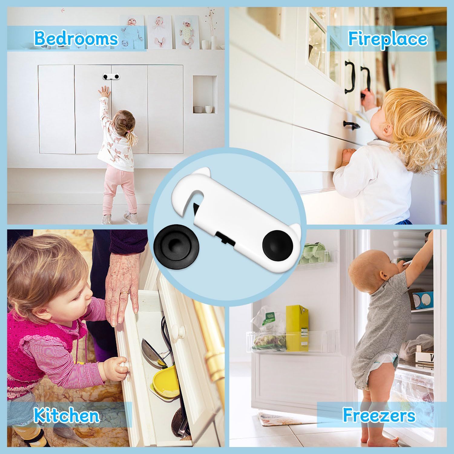 ?簡単な取り付け - このベビーキャビネットロックの取り付けには工具は必要ありません。接着剤を剥がして所定の位置に置くだけです。製品は小型で、キャビネット、引き出し、ワードローブ、パントリー、冷蔵庫などに適しています。まるで魔法のようで、あなたの人生を変えます!