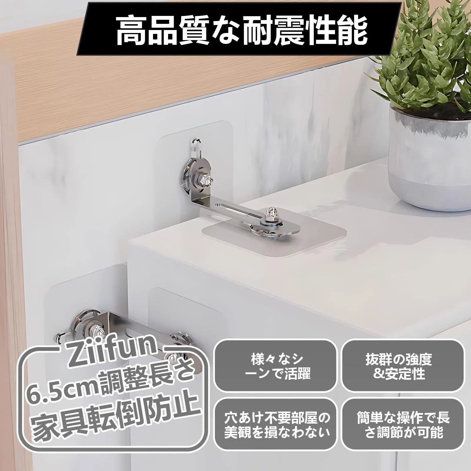 【調整可能な距離】家具転倒防止器具のサイズは6x6CM、壁からの最長距離は6.5CM、調整可能な距離は0?6.5CM、必要に応じて壁からの距離を調整し、家具を所定の位置に保つための安全性とを効果的に高めます