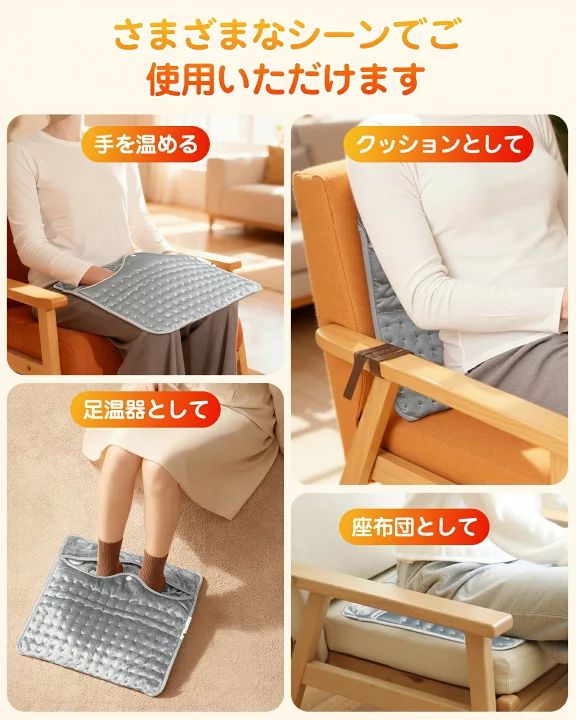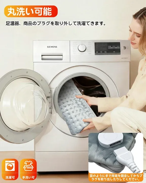 【幅広い用途 & 丸洗いOK】 男性・女性問わず、体のさまざまな部分や室内で使用できます。 足元だけでなく背中や肩、腹部、 脚、 膝、 腕などにも使用でき、書斎リビング、寝室、 オフィスでも活躍します。 冬のギフトやクリスマスプレゼントにも最適です。 内部の加熱線 がしっかり保護されているため、 耐久性にも優れています。カーペット全体を洗うか、脱水機にも対応可能です。 ★