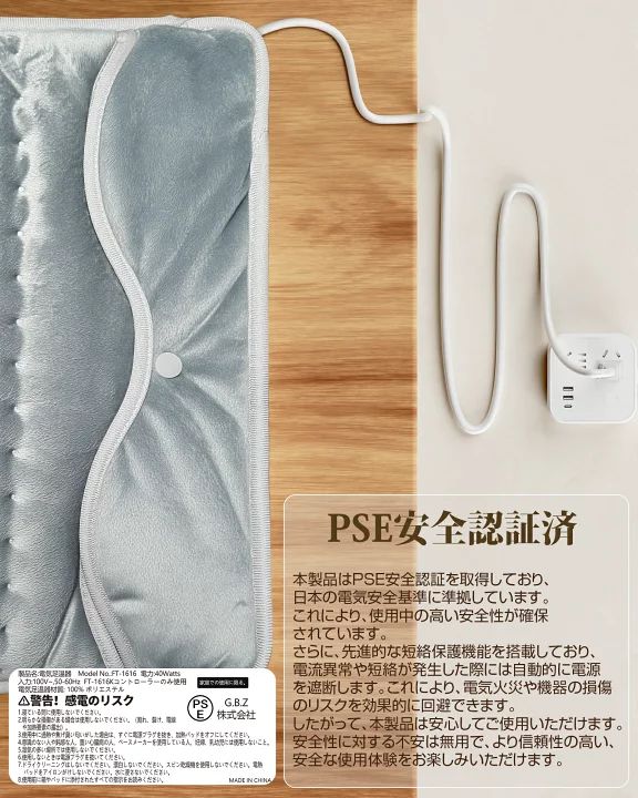 【上質な素材& 省エネ】 表面は厚手のふわふわフランネル生地を使用しており、 柔らかくて暖かく、触り心地も抜群です。 発熱体はパッドに内蔵され、 継続的に発熱保温し、加熱時間が速く、 安全性にも優れています。 5種類の保護機能 (リアルタイム監視、 絶縁保護、難燃性、ライン保護、過熱保護) を搭載し、安全性も抜群。省エネで環境にも優しいです。 ★