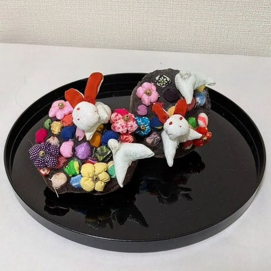 【ハンドメイド】ちりめん細工 つまみ細工 ハスの実飾り セット お正月飾り 和雑貨①