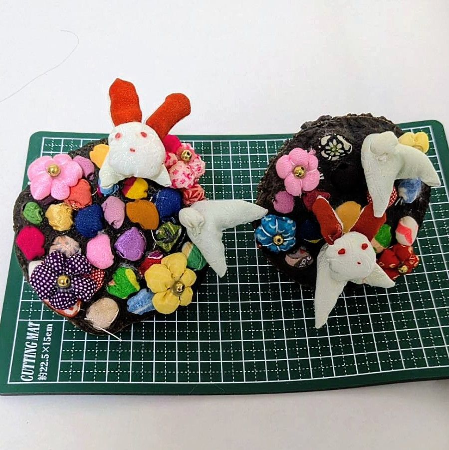 ・ハンドメイド作品のため、形やサイズ、使用している布の柄の出方などに若干の個体差がございます