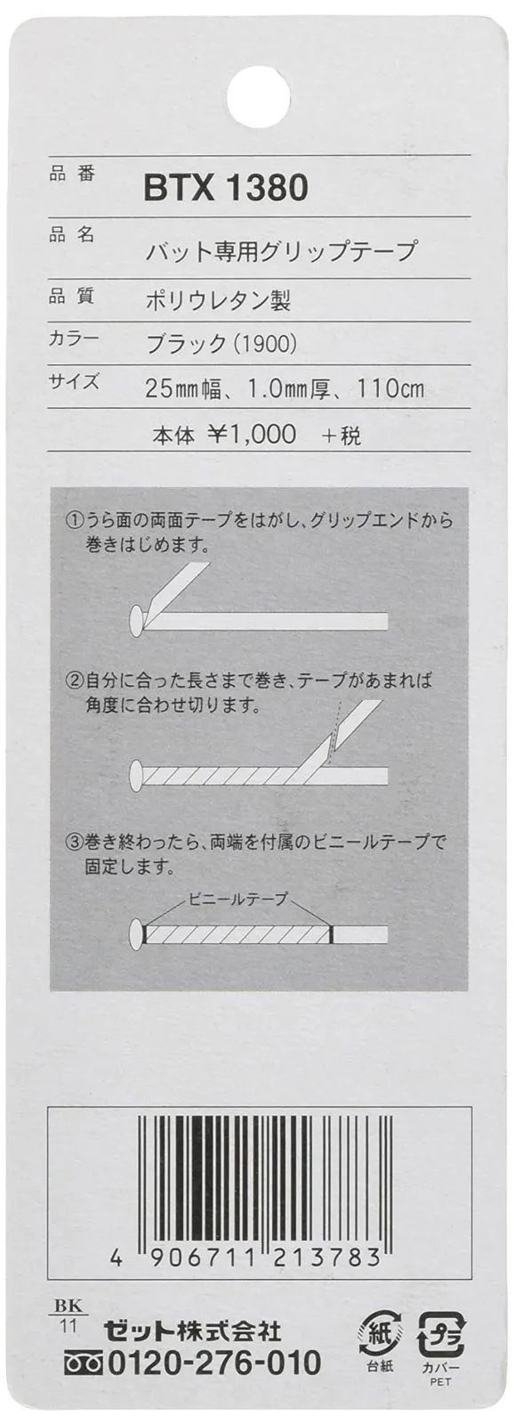 ゼット(ZETT)野球 バット用 グリップテープ (ナノテクノ) ブラック BTX1380