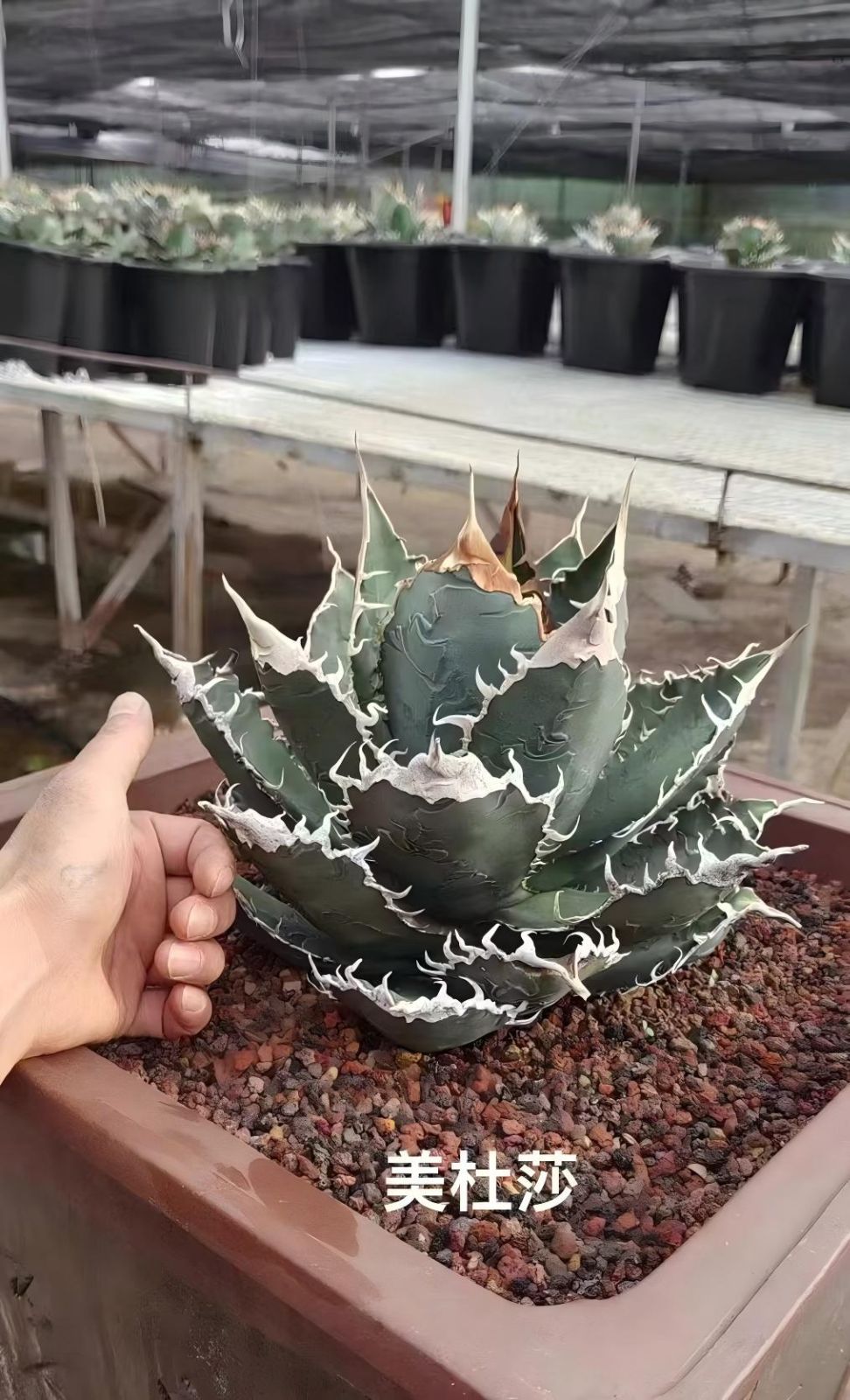 【美杜莎 TC】アガベ チタノタ 子株 亀甲積み鉢120 鉢付きセット メデューサ Medusa