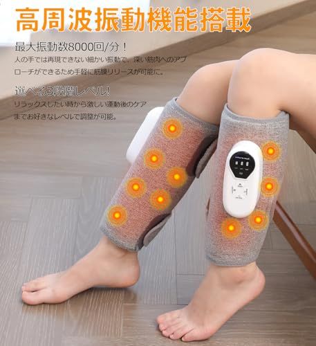 【最大振動数8000回/分】 空気圧x熱ケア x 振動の三つ機能搭載、従来品より強力で効果的にふくらはぎケア。 コンディションに合わせて選べる3段階レベル。 リラックスしたい時から激しい運動後のケアまでお好きなレベルで調整が可能。