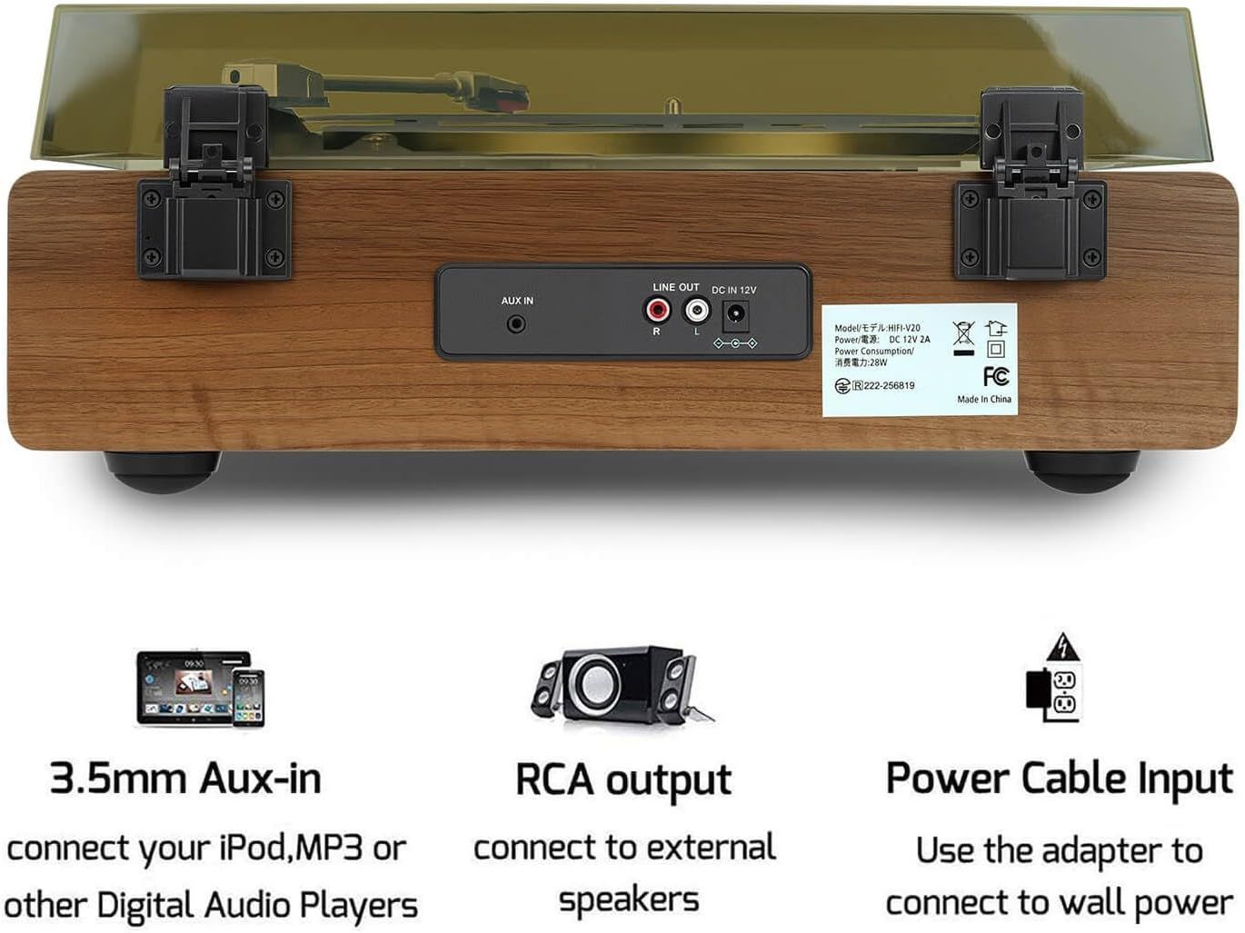 ◆多種端子で使い方いろいろ ・RCA OUT:外部スピーカーへ接続可能 ・AUX IN:スマホやタブレットの音楽をスピーカーで再生 ・ヘッドホン端子:深夜でも周囲を気にせずリスニング可能