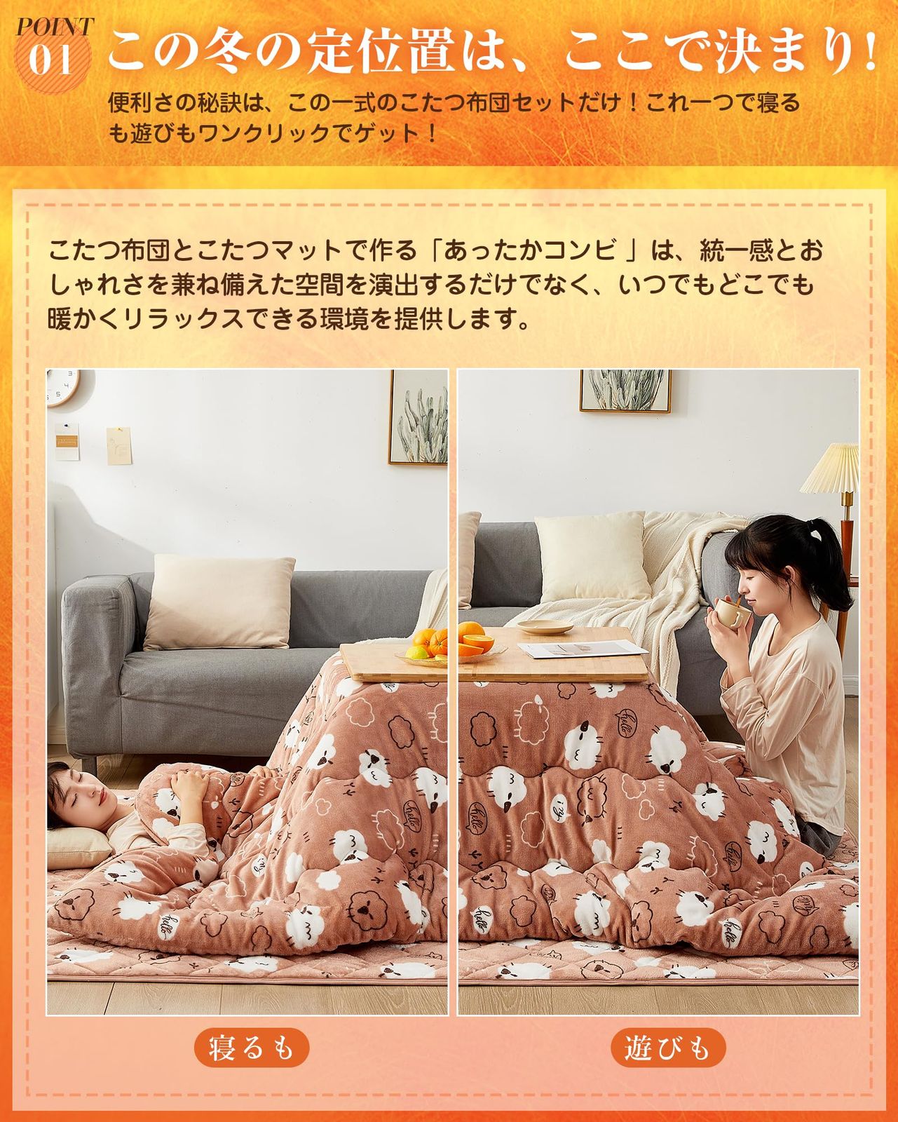 【掛布団185x185cm+敷布団190x190cm】火燵布団セット 洗える コタツふとんせっと 厚手 あったか 24時間持続制菌消臭 マイクロファイバー 静電気防止 毛抜けない 羊ブラウン ??