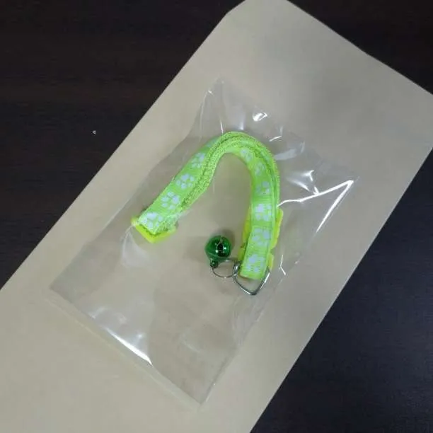 鈴付き 肉球柄首輪 小型犬用 猫用 調整可 ワンタッチ グリーン