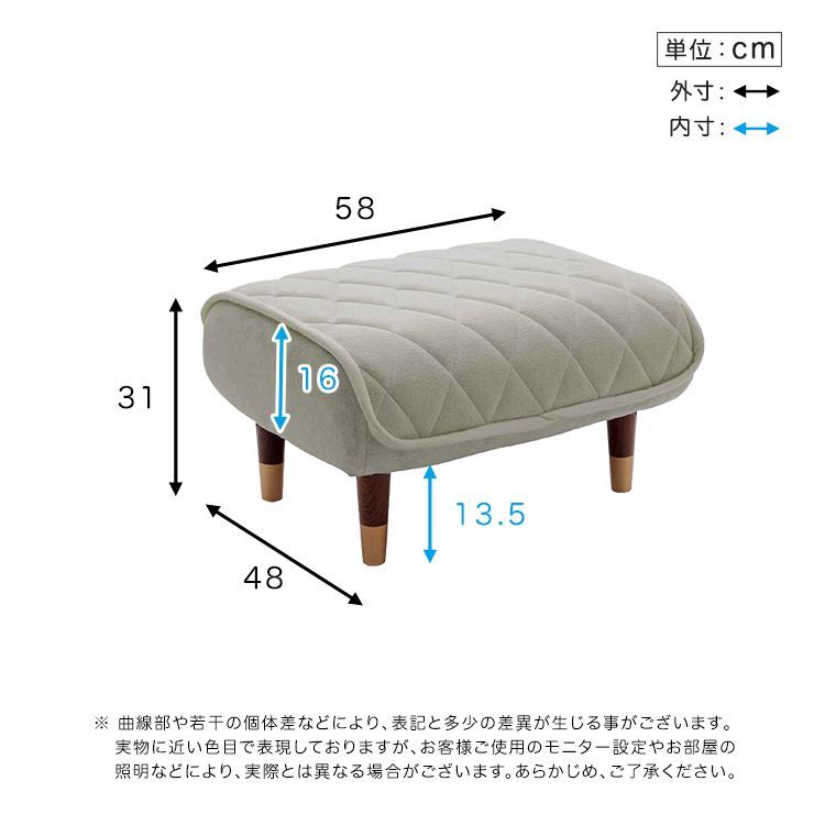 【商品説明】 ダイヤモンドキルトのオットマン単品! 座面のダイヤモンドキルトがおしゃれで高級感のある雰囲気を演出します。 少し大きめの作りでオットマンだけでなくテーブルやスツールとしてもお使いいただけます。