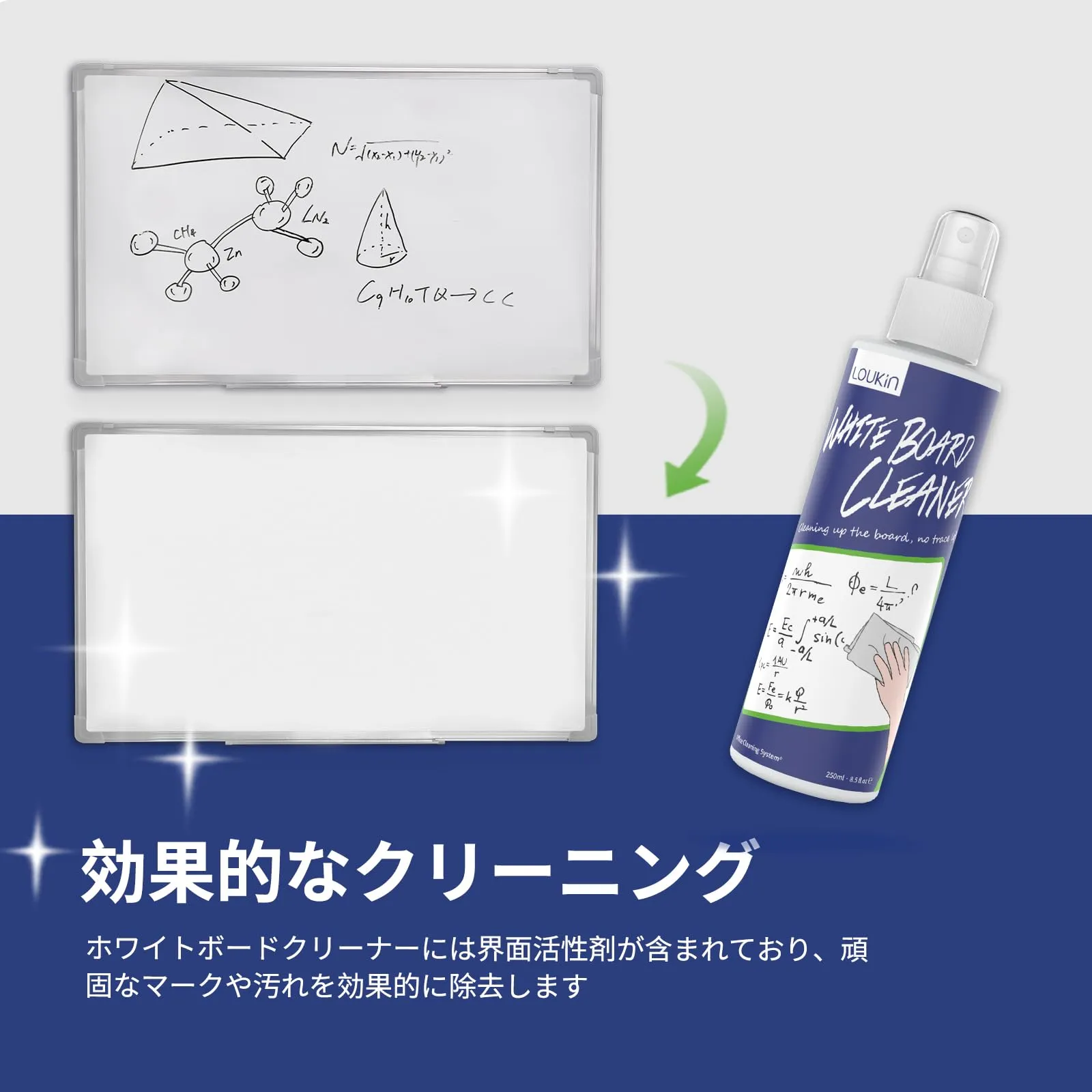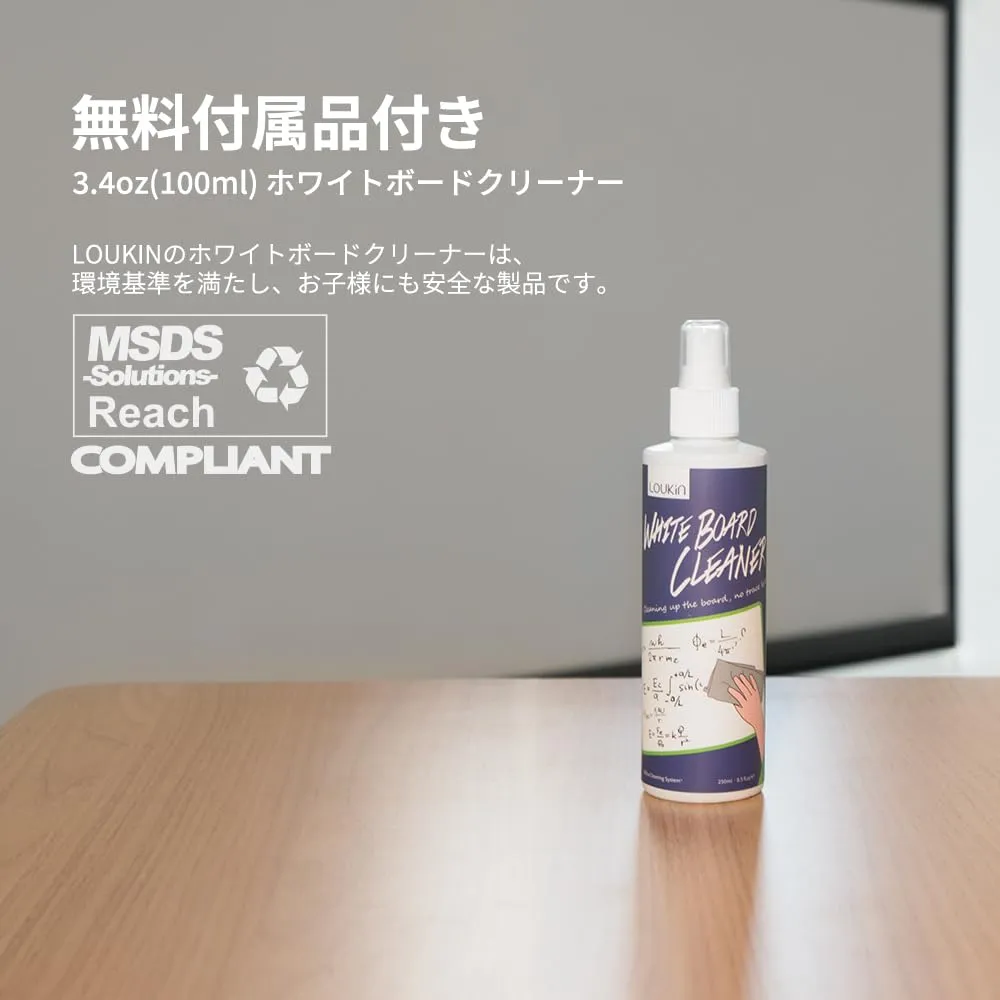 おまけ: 100ml のホワイトボードクリーナー (AP 認定、非毒性&低臭気) が 1 本付いています。LOUKIN のクリーナーを使えば、消えにくいマーカーのインクが綺麗に消えます。
