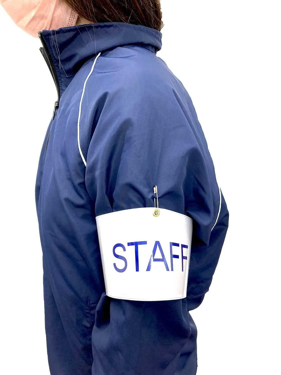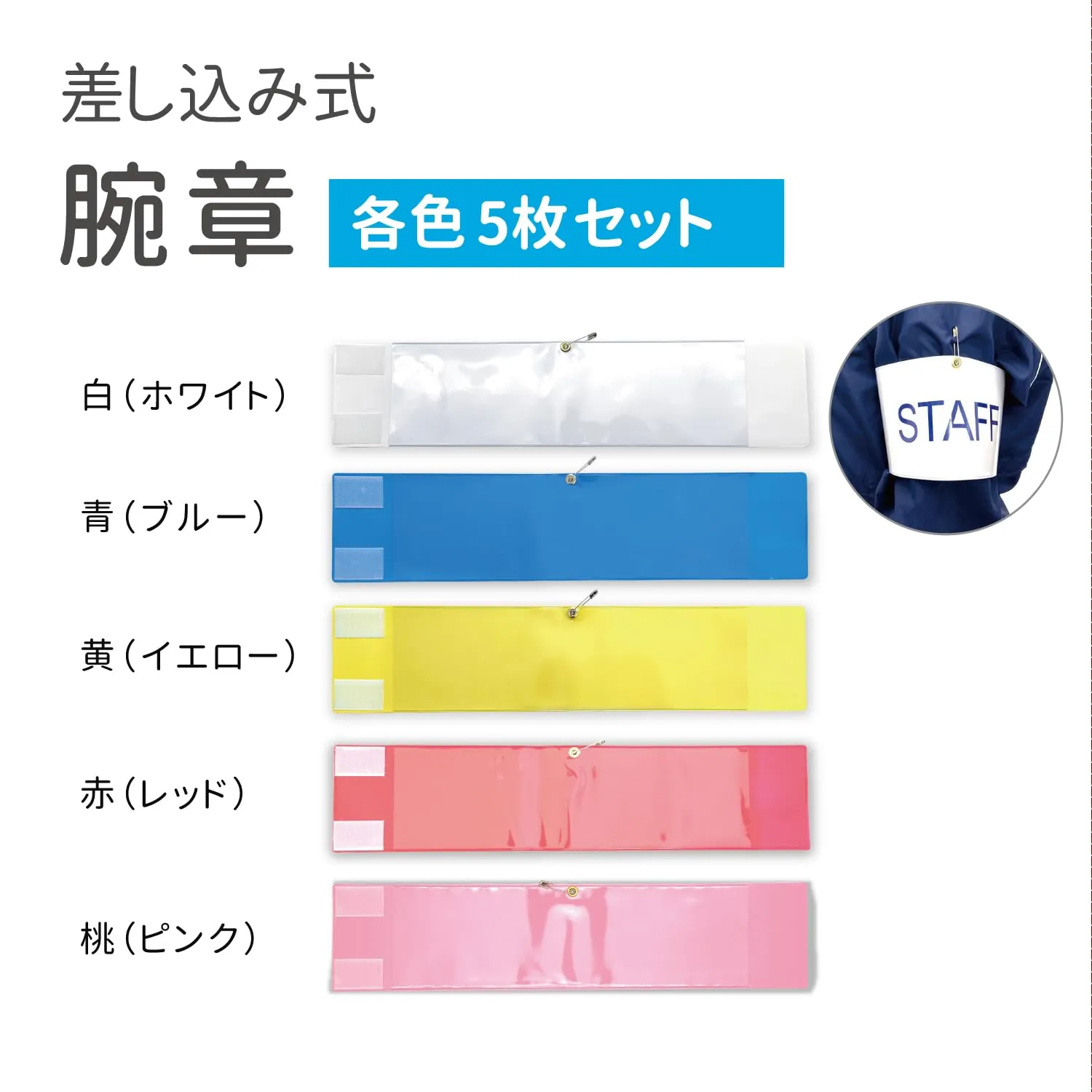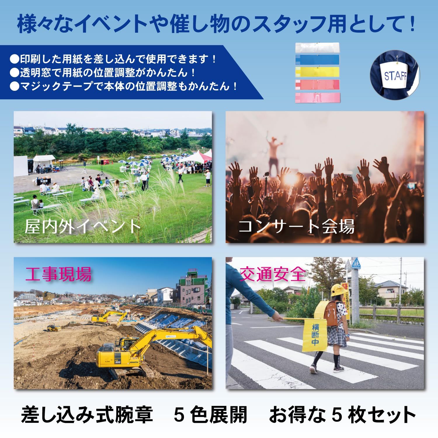腕章 差し込み式 5色展開 5枚セット 日本製 マジックテープ 安全ピン付き スタッフ 撮影 町内会 自治会 (青)